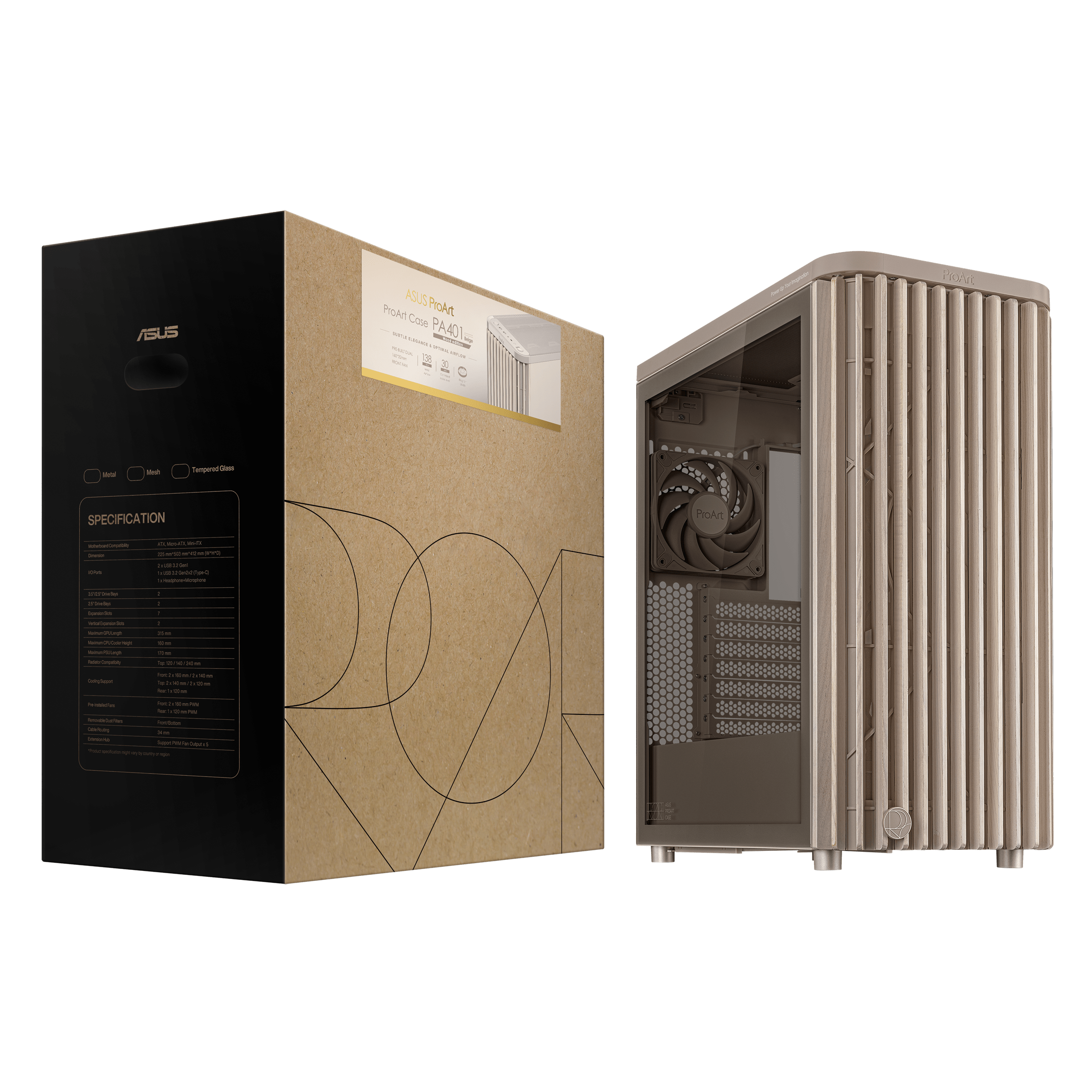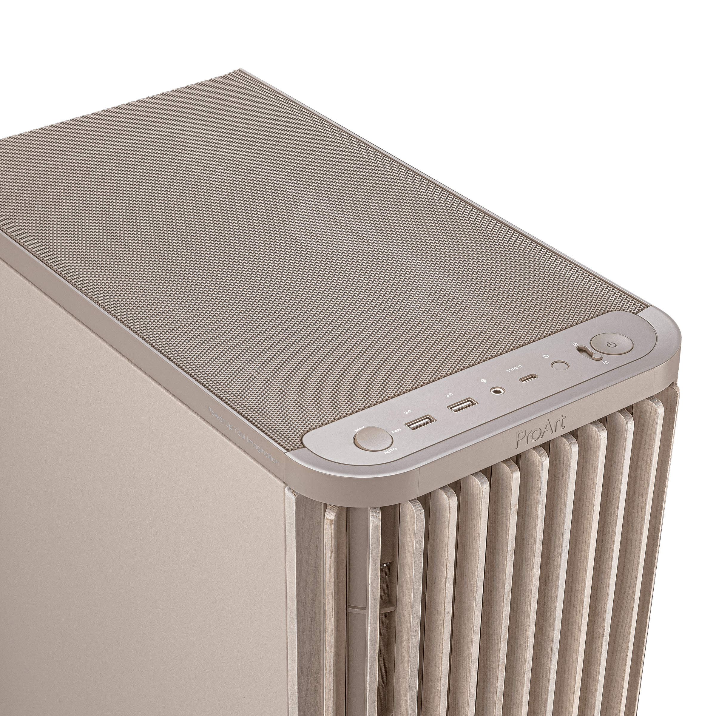 ASUSより、高級感のあるフロント木製デザインを採用したクリエイター向けブランドProArtのPCケースベージュカラーモデル「ProArt PA401 Wood Edition Beige」を発表
