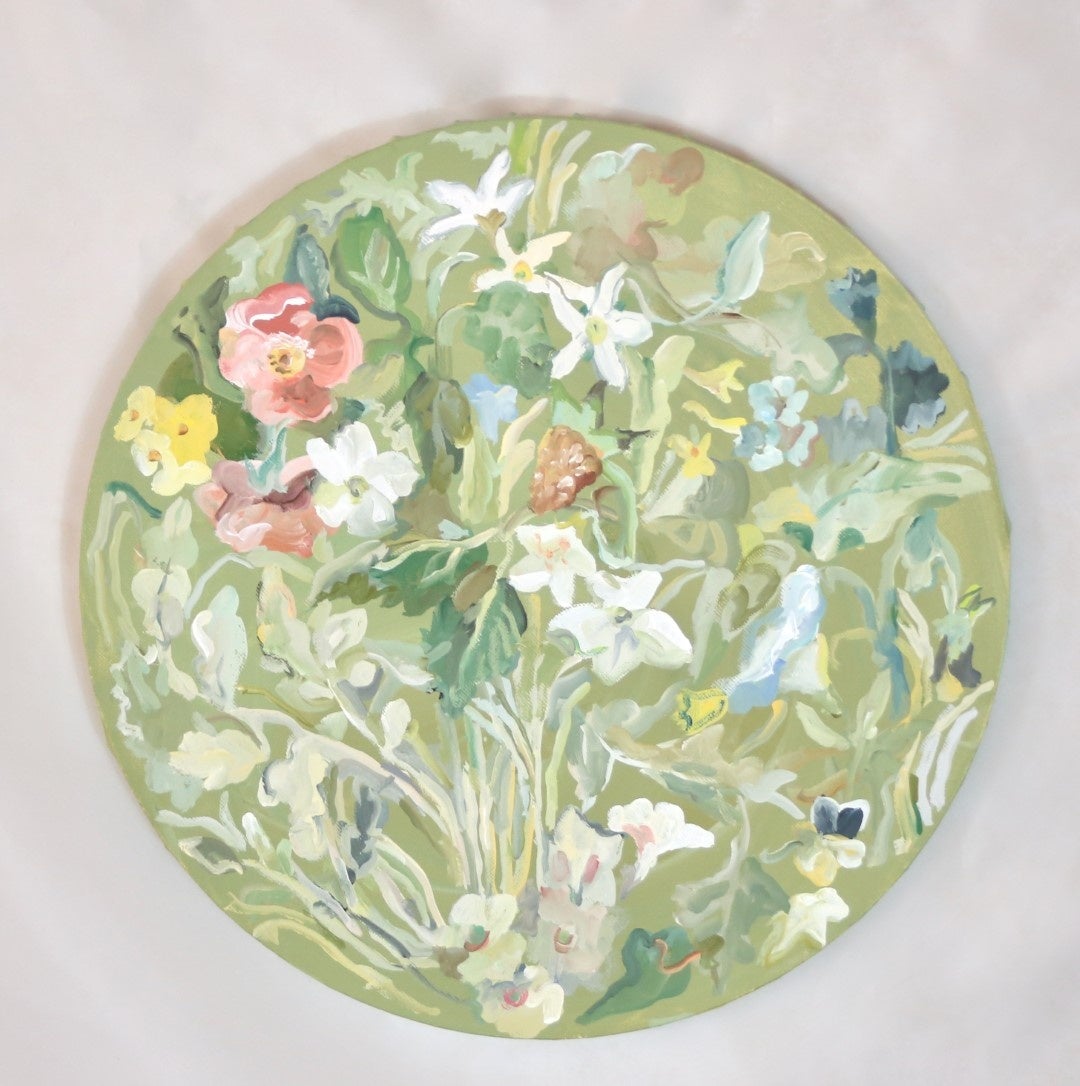 本展「On the ground」では、季節ごと、また朝と夜でも違う姿を見せる名前も知らない草花の様子に惹かれて制作したシリーズを、書店ならではの本に囲まれた特別な空間に展示します。草花の儚さと力強さを、庄島氏の鮮やかな色彩と伸びやかな筆致でご体感いただけます。この機会にぜひご覧ください。