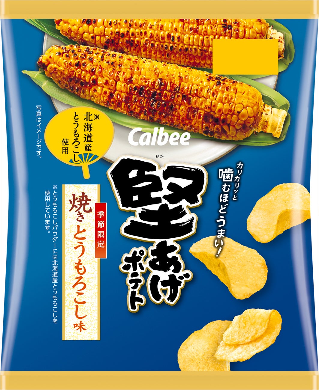 「堅あげポテト応援部」で選ばれた“夏の味”を商品化!北海道産とうもろこしを使用※し、素材の甘みとバター醤油の香ばしさが楽しめる『堅あげポテト 焼きとうもろこし味』