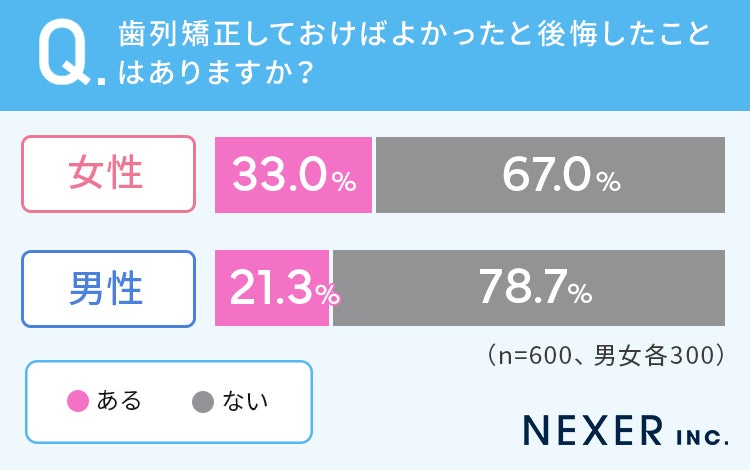 株式会社NEXER・歯列矯正しておけばよかったと後悔した経験に関する調査