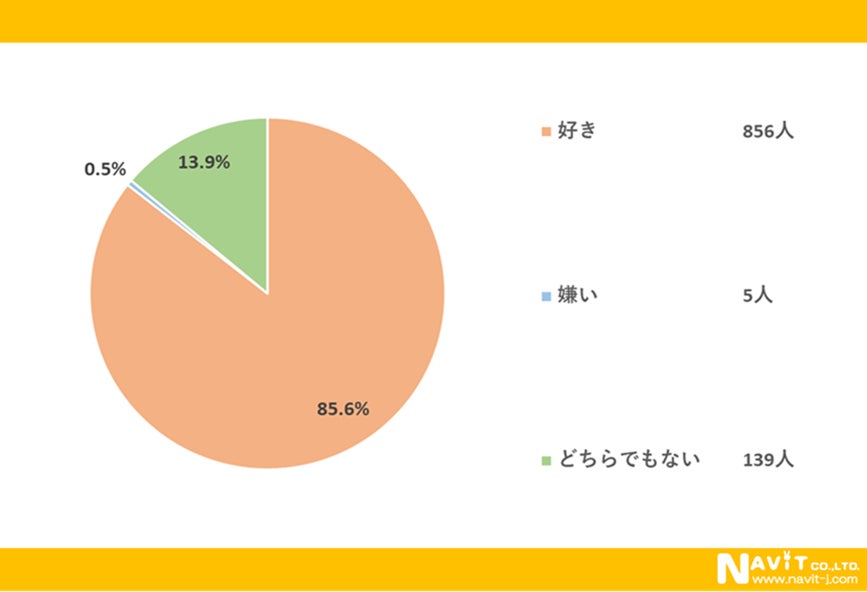 「あなたは音楽が好きですか?」という質問については、「好き」が85.6%、「嫌い」が0.5%、「どちらでもない」が13.9%と、8割以上の人は、音楽が好きだと回答していました。