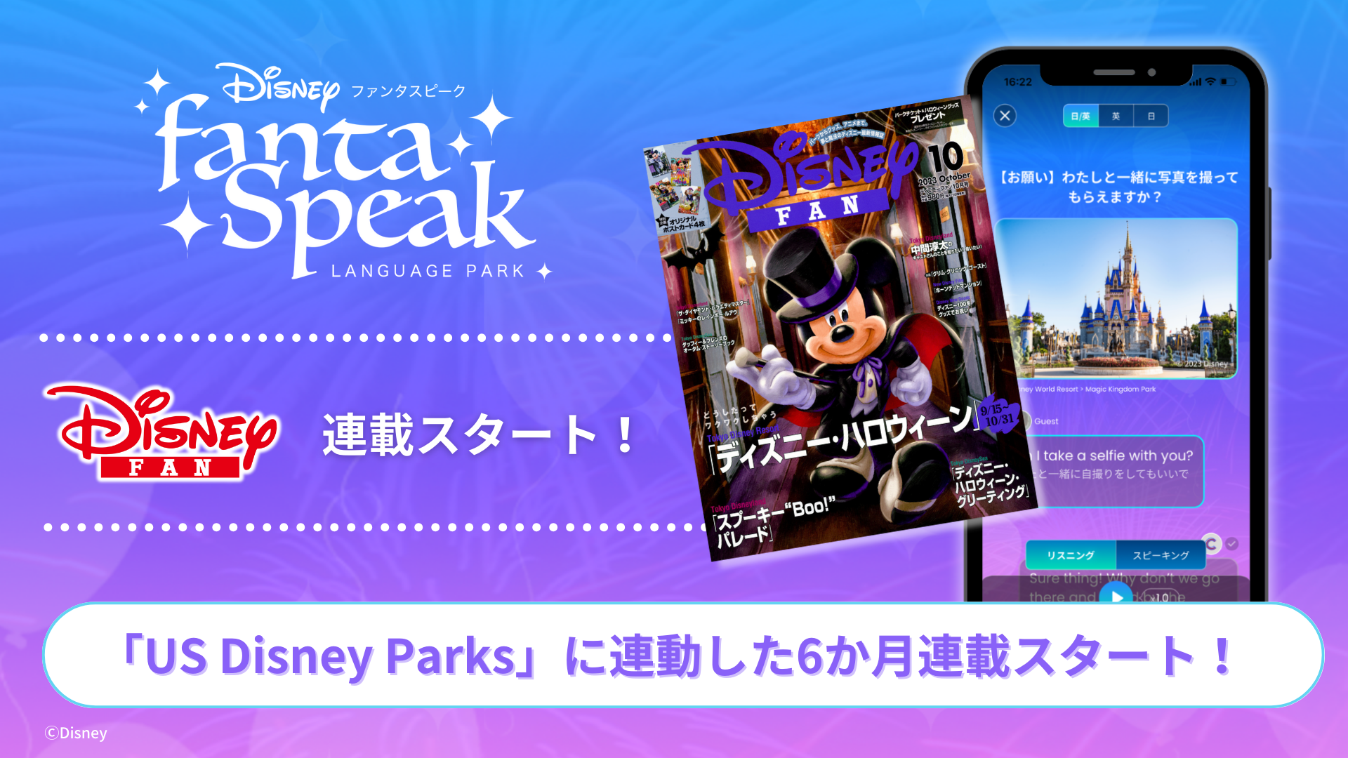 『ディズニーファン(講談社)』にて、ディズニー英語・英会話アプリ『fantaSpeak(ファンタスピーク)』の連載をスタート!
