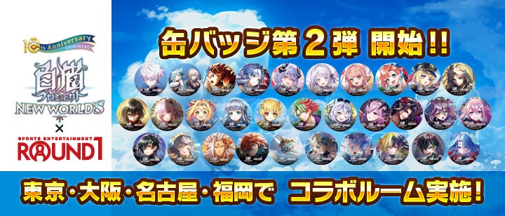現在開催中の「白猫プロジェクト×ラウンドワンコラボ」では、10月15日(火)10:00より缶バッジ特典が後半に変更になります。後半では「第3章 〜それがすべての終わり〜」から「第2章BLOODSKY:DYSTOPIA」までに登場したキャラクターを描いた缶バッジをご用意しております。前半に引き続き、東京、愛知、大阪、福岡の4店舗では『白猫』初めての「3面プロジェクターによる映像演出付コラボルーム」もご用意しております。ぜひお近くのラウンドワンに足を運んでみてください。