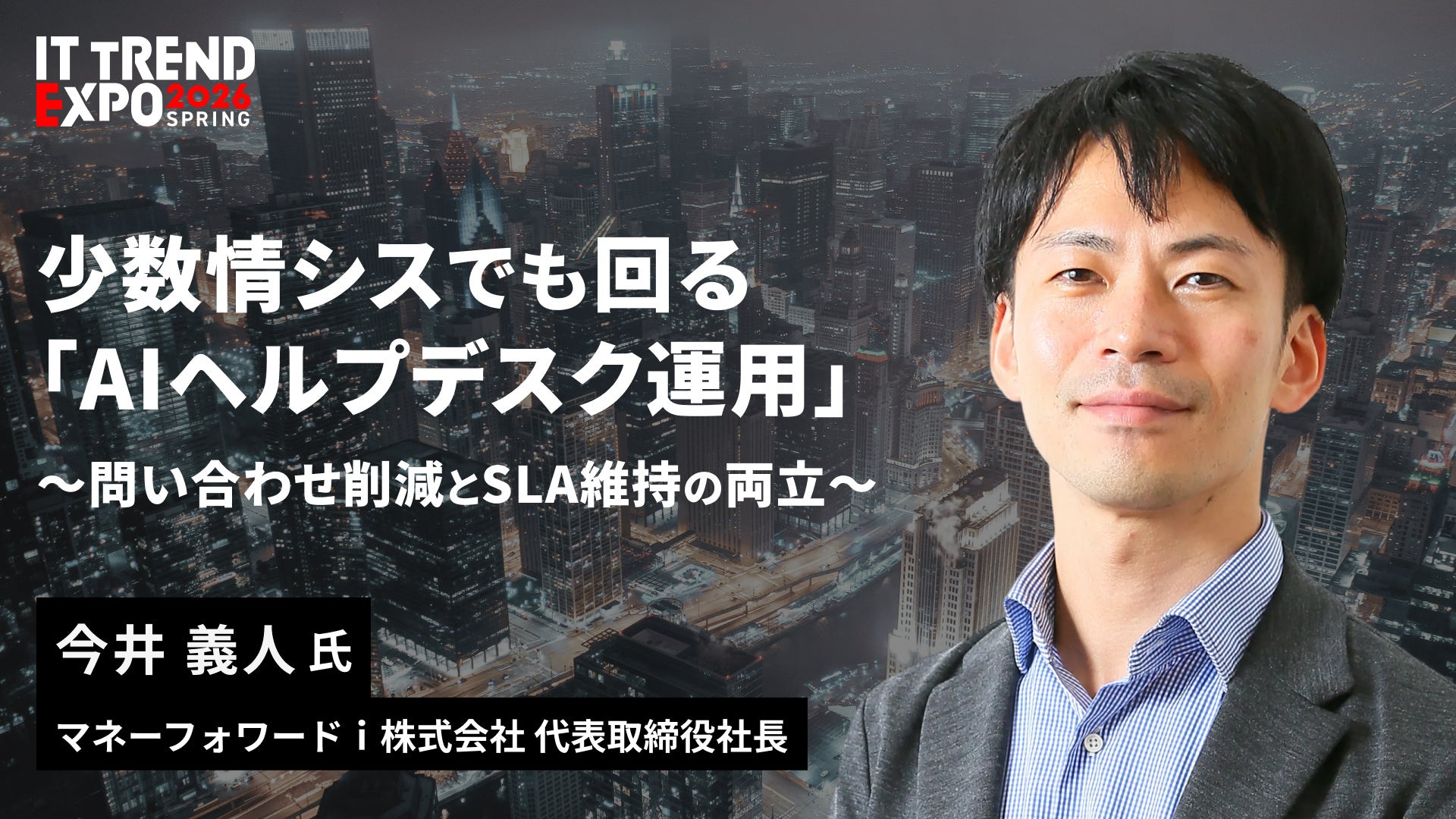 株式会社マネーフォワードのグループ会社であるマネーフォワードi株式会社は、2026年3月3日(火)〜3月7日(土)にオンライン開催される「ITトレンドEXPO2026 Spring」において、代表取締役社長の今井義人が登壇します。