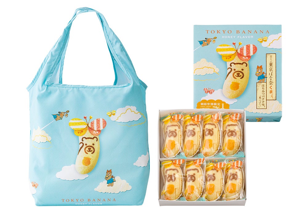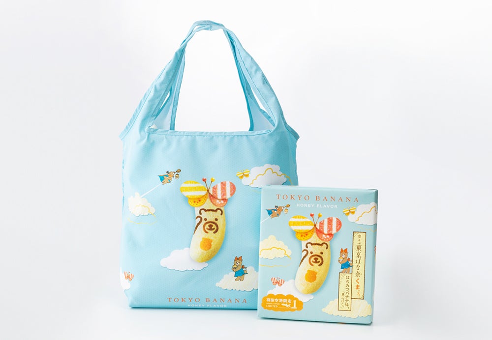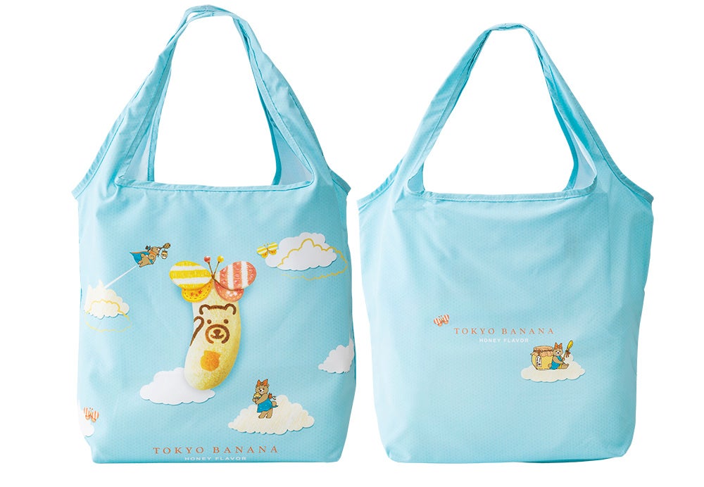 空とぶ東京ばな奈くまッス。はちみつバナナ味、「見ぃつけたっ」 エコバッグセット