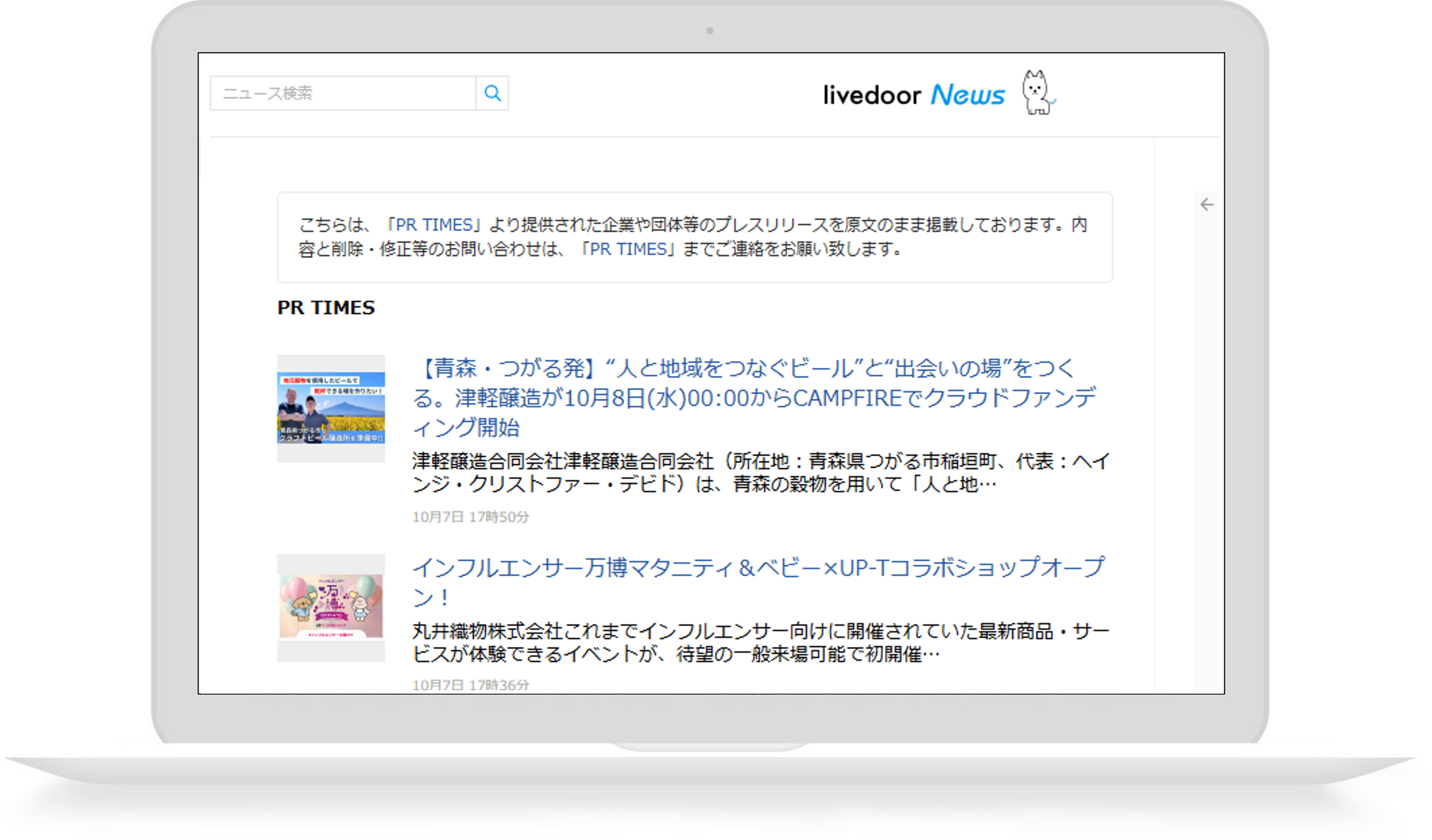 国内トップクラスのポータルサイト「ライブドアニュース」にPR TIMESから配信コンテンツを全文転載