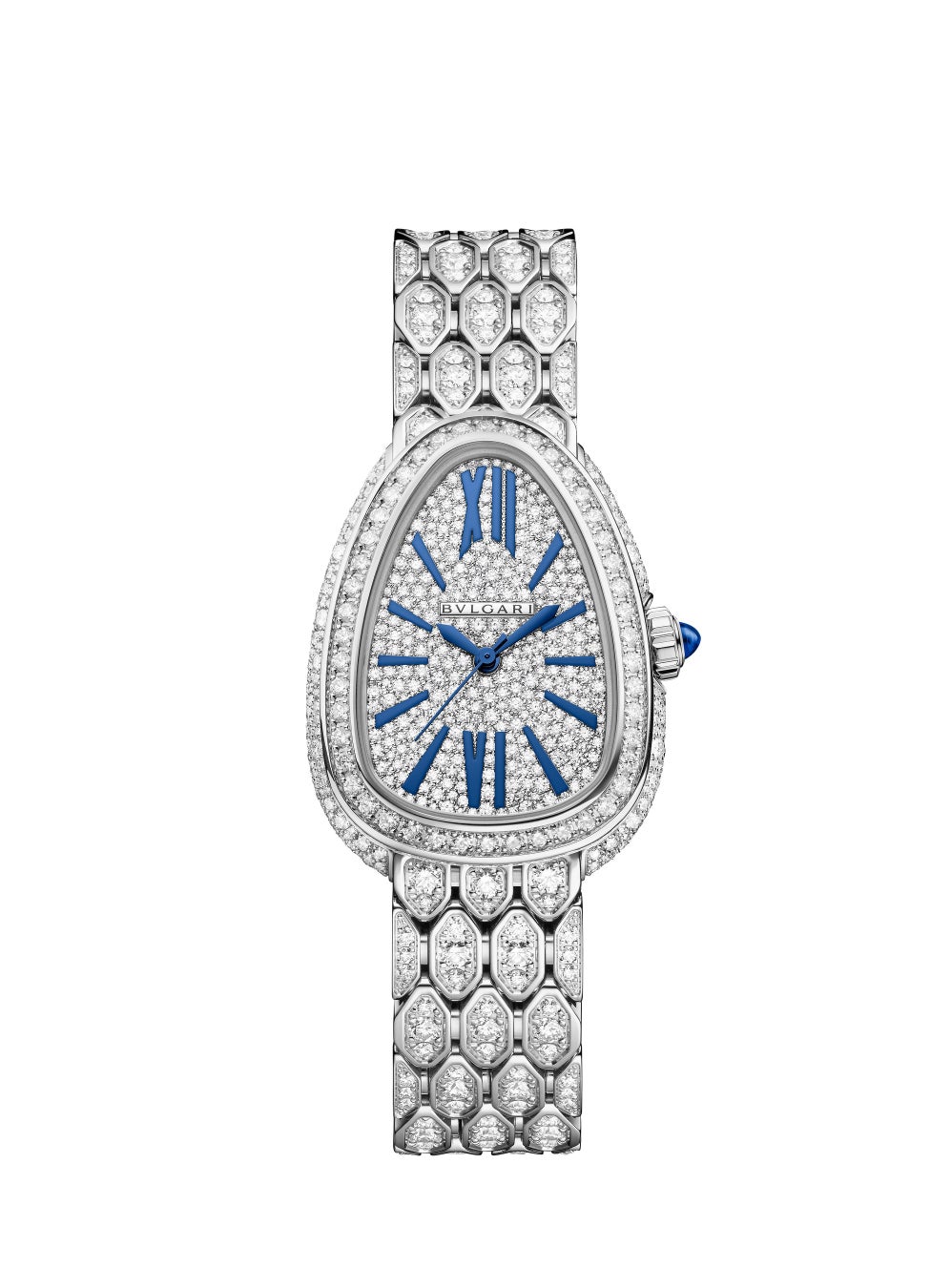 1948 年に機械式ウォッチとして初めて発表されたセルペンティには、その当時で最も優れたムーブメントが搭載されていました。そして今ブルガリは、2020 年のトゥールビヨン、2022 年のピコリッシモに続き、ル・サンティエの自社工場で製造された完全自社開発の「BVS100 レディ ソロテンポ」とともに、新たな歴史を刻み始めました。