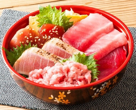 前回も人気だったまぐろ丼の専門店が登場!市場で “見て、卸して、食べて”自信を持って選んだ天然まぐろの中トロや赤身のお刺身、トロすき身、づけ、炙りを食べ比べできるボリューム満点の一杯。