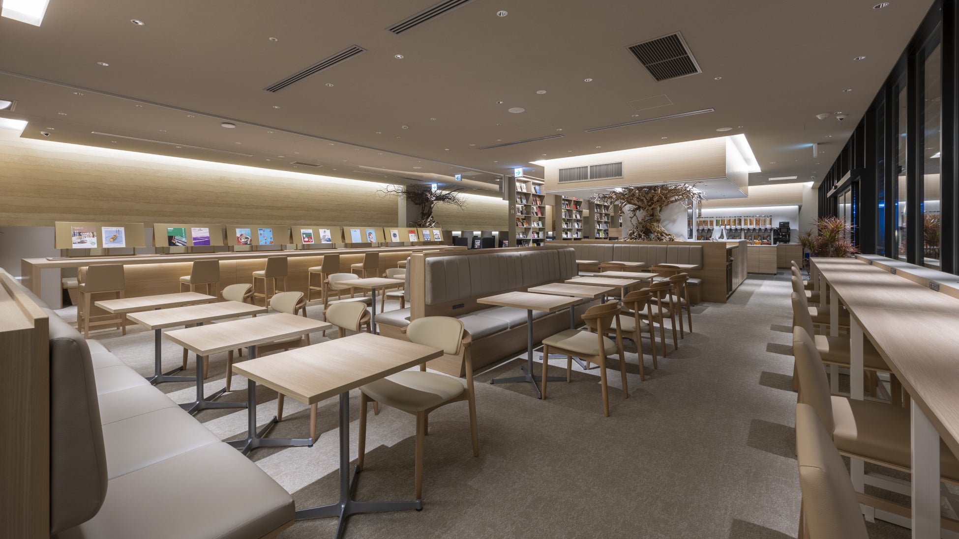 また、地域特性を踏まえ、学生の勉強場所、ビジネスパーソンのワークスペース、ファミリーのくつろぎの場として、店読書や雑談に適したカフェスペース、プライベートな時間を過ごせる個室など、多様なシーンに対応し、幅広い層のご利用者の気分や目的に応じて自由に選べる空間となっています。
