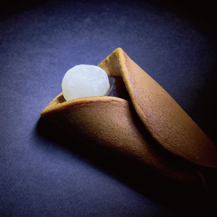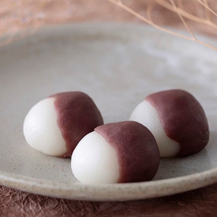 もちもちの求肥と口当たり滑らかなこし餡を、黒糖の風味豊かな生地で包みました。