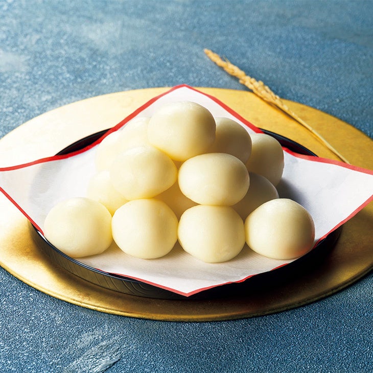 柔らかな餅と滑らかなこし餡でお作りする、京都のお月見だんご。豊作祈願に里芋をお供えすることにちなんで小芋の形をしています。