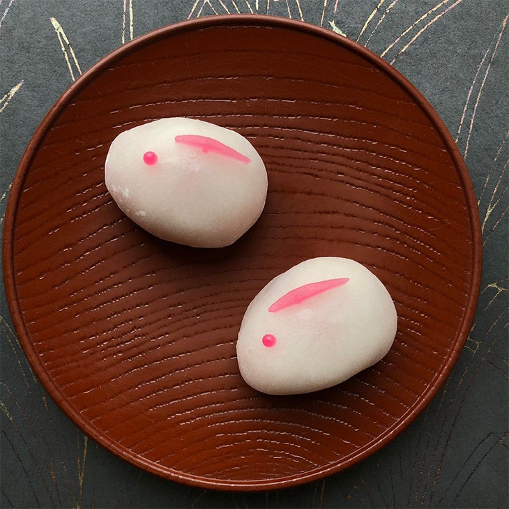 滑らかな紅餡を、うさぎをかたどった柔らかな求肥でくるみました。