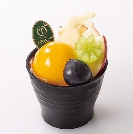 ミルクババロアに月に見立てたマンゴームースをのせ、季節のフルーツをトッピング。