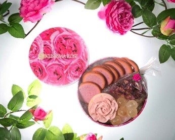 ふんわりと本物のバラが香るスイーツを、可愛らしいローズ缶に詰め合わせました。