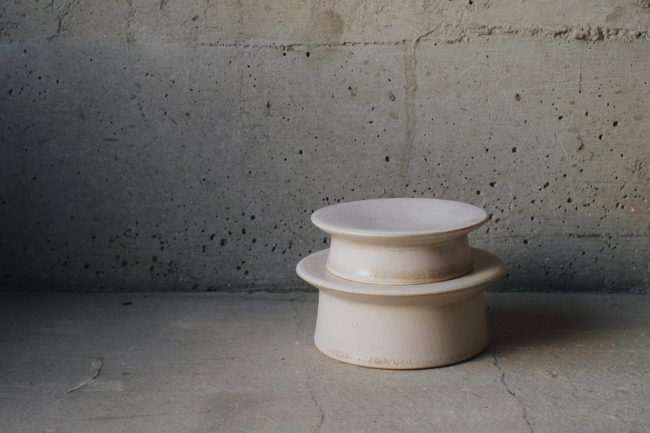 2022年の春から作陶。日常の中で心にとまった景色、光、生物たちから美しさや可笑しみをすくいとり、それを写し込むような気持ちで作陶されています。ささやかなラインや釉薬の移ろいが魅力的です。
