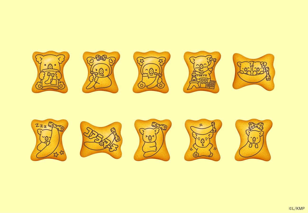 「東京ばな奈の箱持ちマーチくん」や「東京ばな奈着ぐるみマーチくん」、「東京ばな奈とまゆげマーチくん」など、オリジナル絵柄10種類が登場。マーチくんたちと東京ばな奈のコラボのイラストはとってもキュート!おいしい「コアラのマーチ」を食べながら自分の好きな絵柄を見つけてみてくださいね。