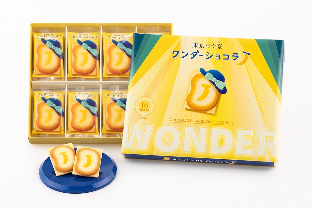 東京ばな奈オリジナルのミルキーなバナナショコラを、味わいも食感も相性抜群で作り上げたラングドシャクッキーでサンドした『東京ばな奈ワンダーショコラ』。見た目も美味しさも、驚くほどこだわりました。ワクワクが止まらない3つのワンダーポイントとともに、じっくり味わってみて!