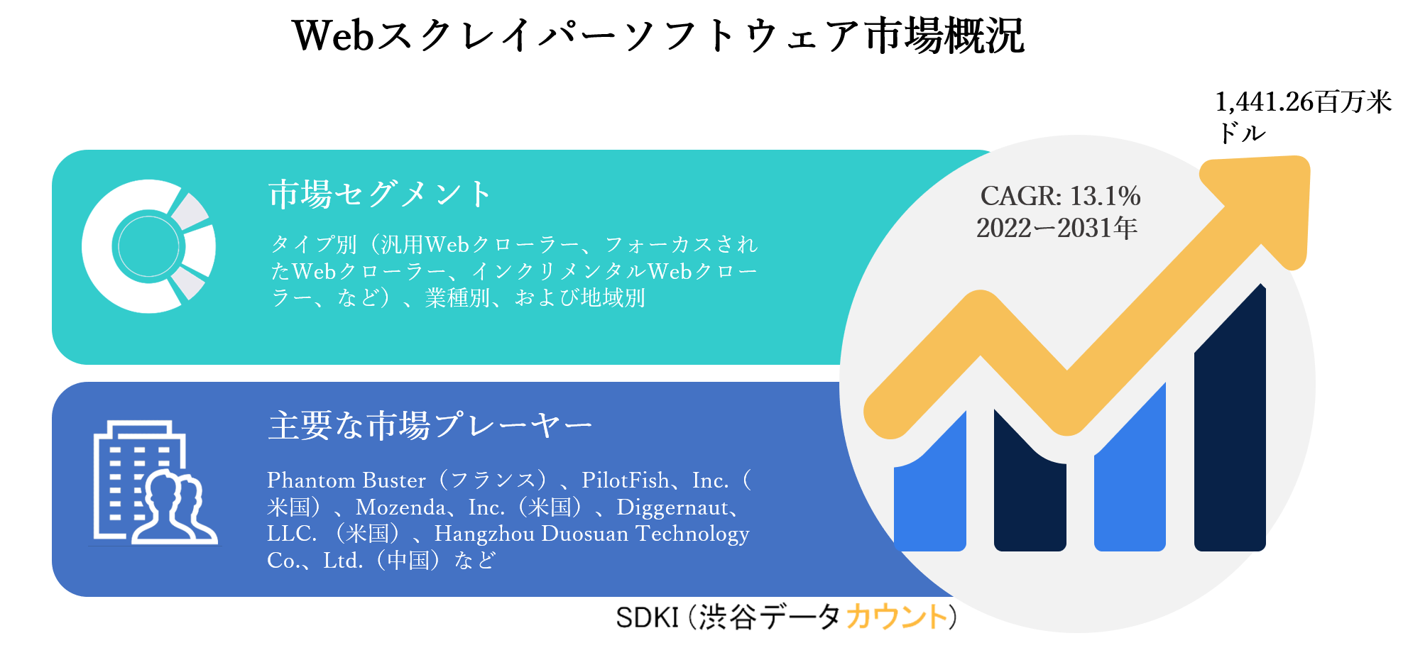 SDKI Inc.は、世界のWebスクレイパーソフトウェア市場の新レポートを2021年12月30日に発刊しました。この調査には、Webスクレイパーソフトウェア市場の成長に必要な統計的および分析的アプローチが含まれています。レポートで提供される主要な産業の洞察は、市場の既存のシナリオに関する読者に市場の概要についてのより良いアイデアを提供します。さらに、レポートには、市場の成長に関連する現在および将来の市場動向に関する詳細な議論が含まれています。