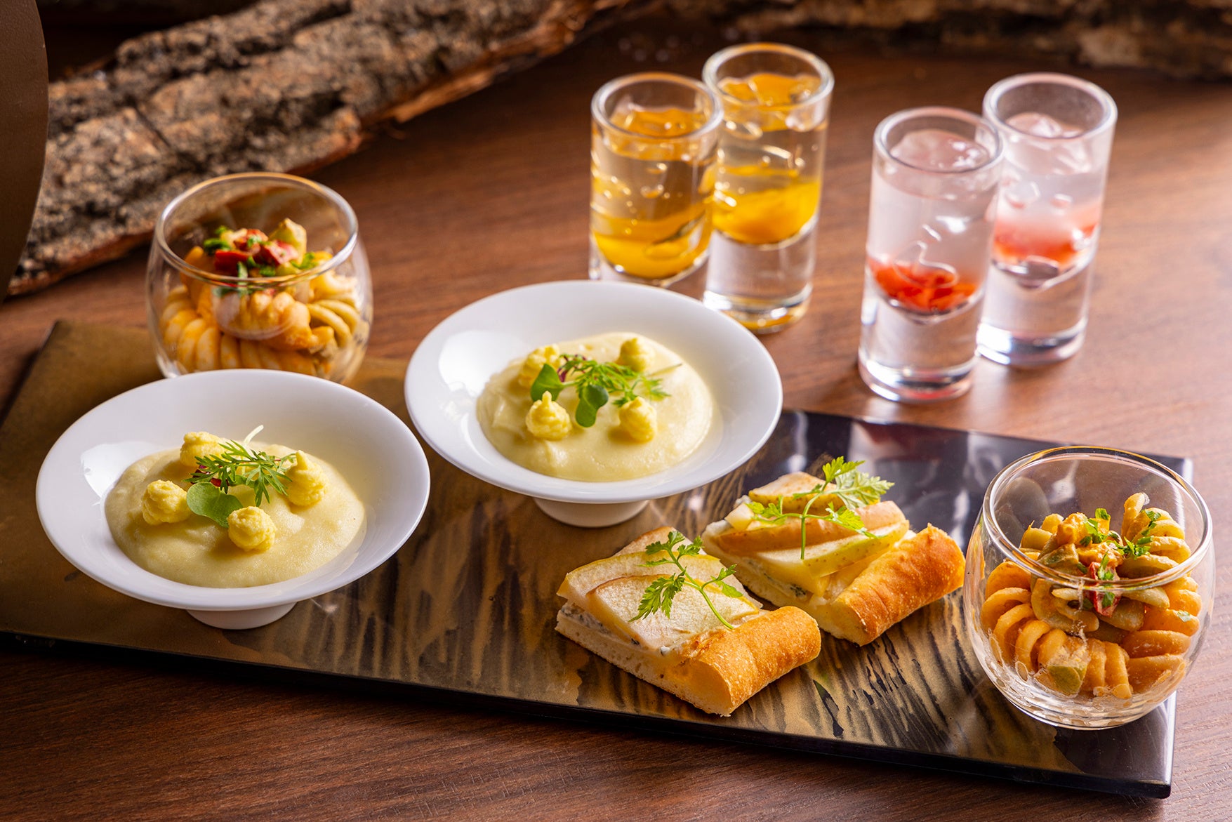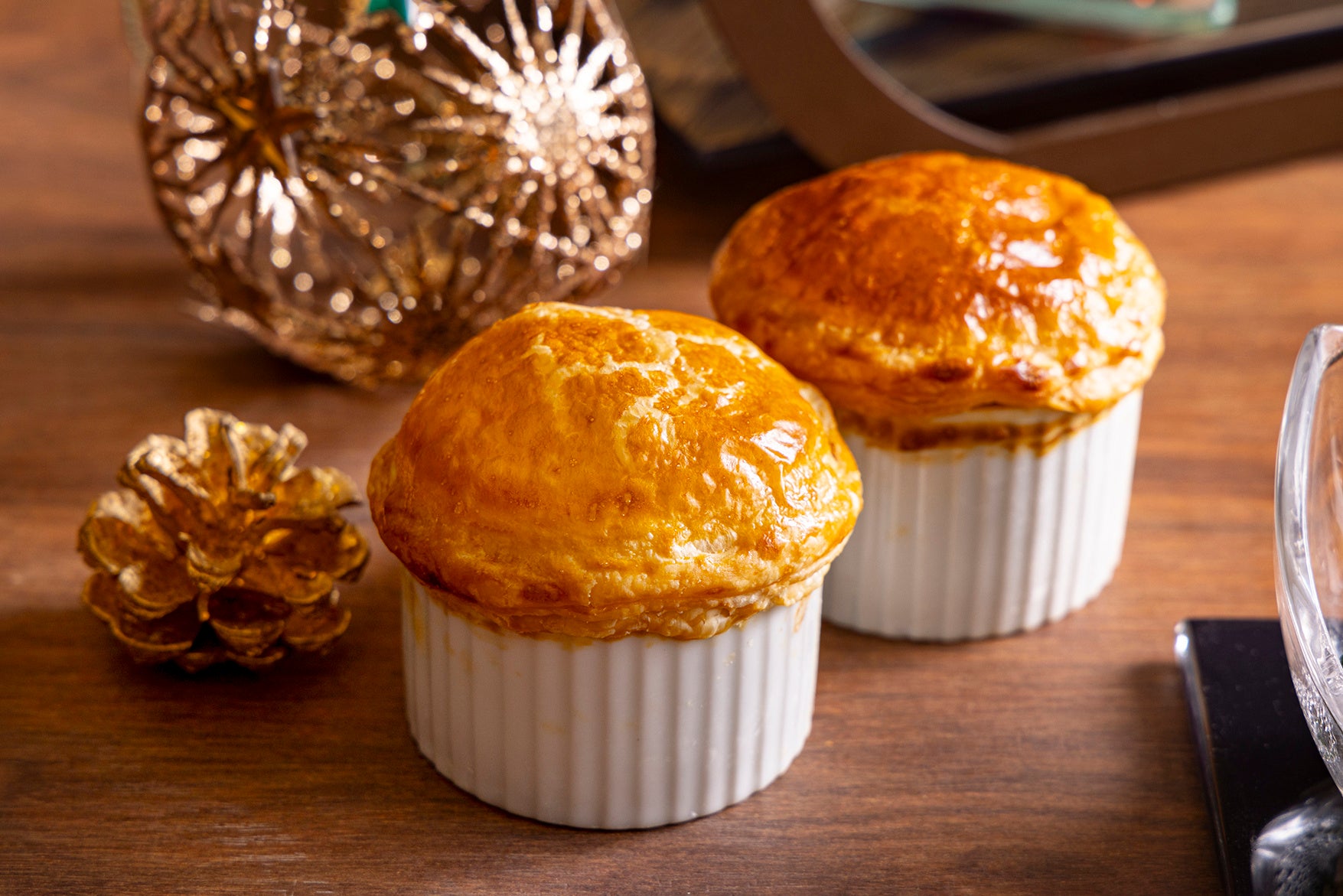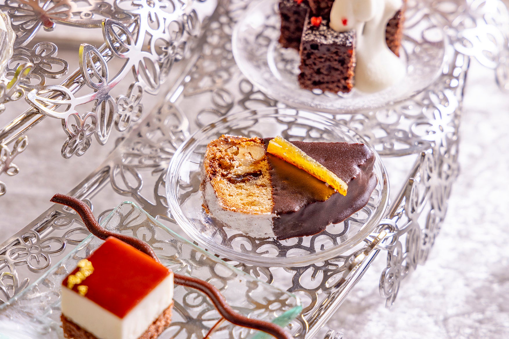 「ウィンター・フェスティブ・アフタヌーンティー」では、クリスマスツリーを模した“ミニタルトツリー風”をはじめ、あたたかく周囲を照らすキャンドルに見立てた遊び心あふれる“チョコレートケーキ”、ホイップクリームと新鮮なラズベリーを用いたスコットランドの伝統的なデザート“クラナカン”でサンタクロースの赤白衣裳を表現するなどクリスマスモチーフを散りばめました。また、「幸せが天まで届くように」という意味を込めて高く積み上げ、食べる時には幸せのお裾分けとして一つずつシューを分け合う“プロフィットロール”をこのアフタヌーンティーではお一人様ずつお召し上がりいただけるようにアレンジ。みなさまの幸せを願ってシェフが考案したおすすめの一品です。華やかな季節にぴったりな“シャンパンゼリー”、クリスマスの定番スイーツ“シュトーレン”など、色とりどりのスイーツが揃います。平日限定で開催するハイティーは、黒毛和牛の煮込みパイ包み焼き、オマールフランなど充実のセイボリーをラインアップ。アルコールとのペアリングも楽しめる大人のハイティーをお楽しみいただけます。フェスティブシーズンにふさわしい煌びやかなスイーツやセイボリーが楽しめる期間限定のアフタヌーンティー&ハイティーを、ぜひこの機会にお楽しみください。
