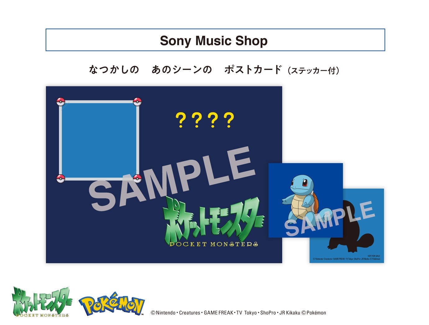 Amazon.co.jpではメガジャケ、その他店舗では「なつかしの あのシーンの ポストカード(ステッカー付)」が付属される。「なつかしの あのシーンの ポストカード(ステッカー付)」は、初代テレビアニメのアイキャッチをイメージしたデザインとなっており、HMVはフシギダネ、TOWER RECORDSはヒトカゲ、Sony Music Shopはゼニガメ、その他応援店ではピカチュウの絵柄のステッカーが付帯され、それぞれポストカードにセットできる仕様となっている。