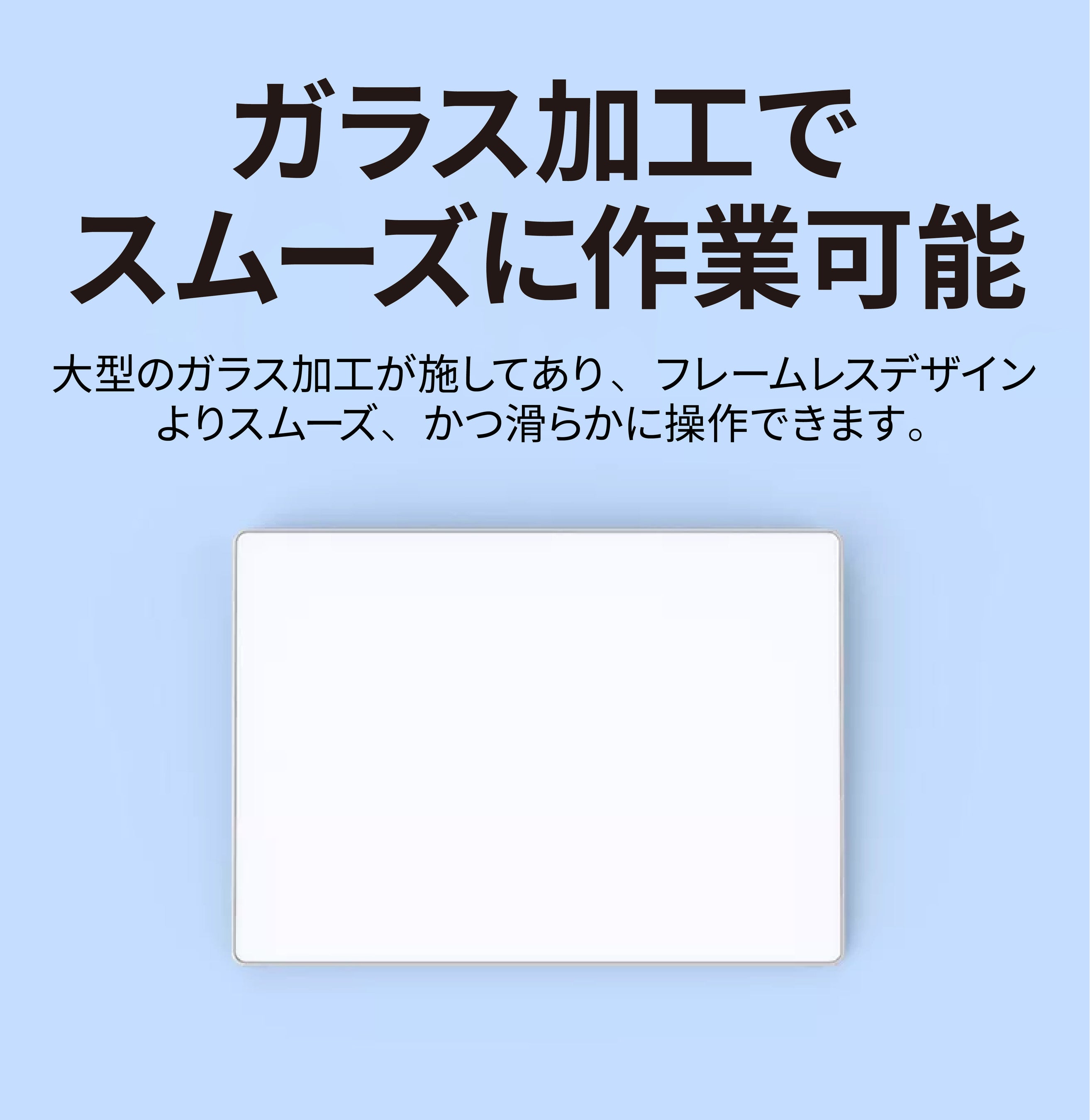 ●表面はガラス加工で縁がないため、スムーズな使用感
