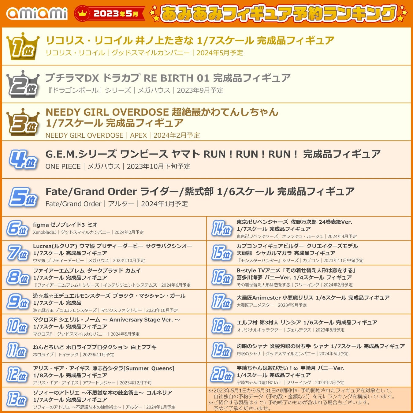 - ホビーショップ『あみあみ』の「2023年5月フィギュア予約ランキング」を発表!
