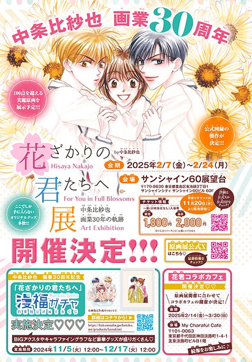 中条比紗也・画業30周年!「花ざかりの君たちへ展~中条比紗也画業30年の軌跡~ by中条比紗也」開催決定‼