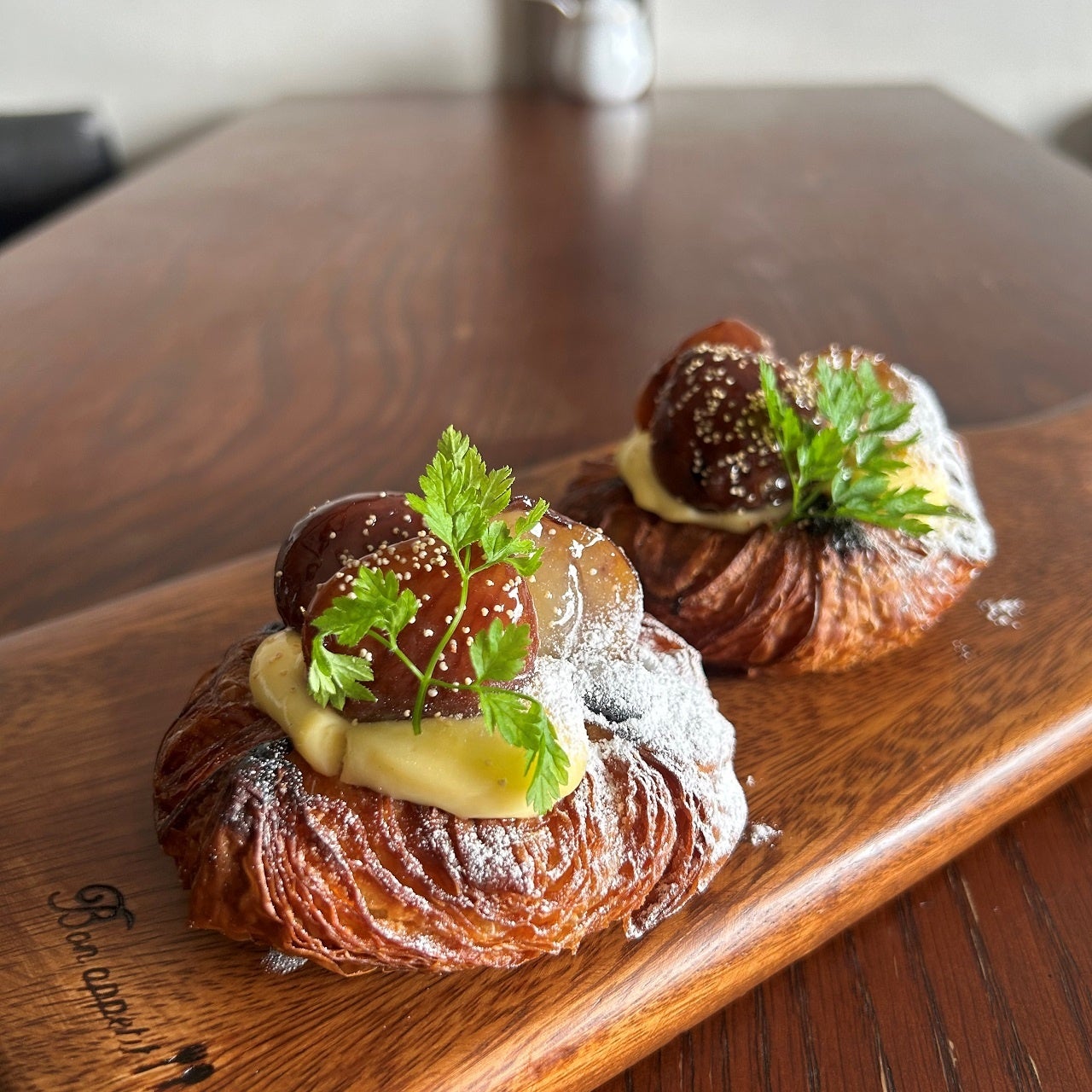 和歌山県産の和栗とカスタードクリームをサクサクのデニッシュに添えた一品。