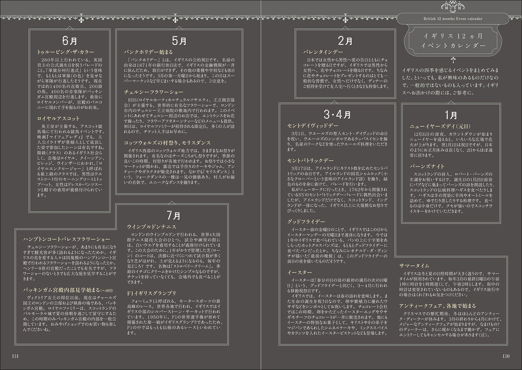 本書では、英国の食文化や季節の行事をはじめ、最近イギリスで注目されているものなど最新事情まで、英国の食の楽しみを季節ごとに、幅広くお伝えします。