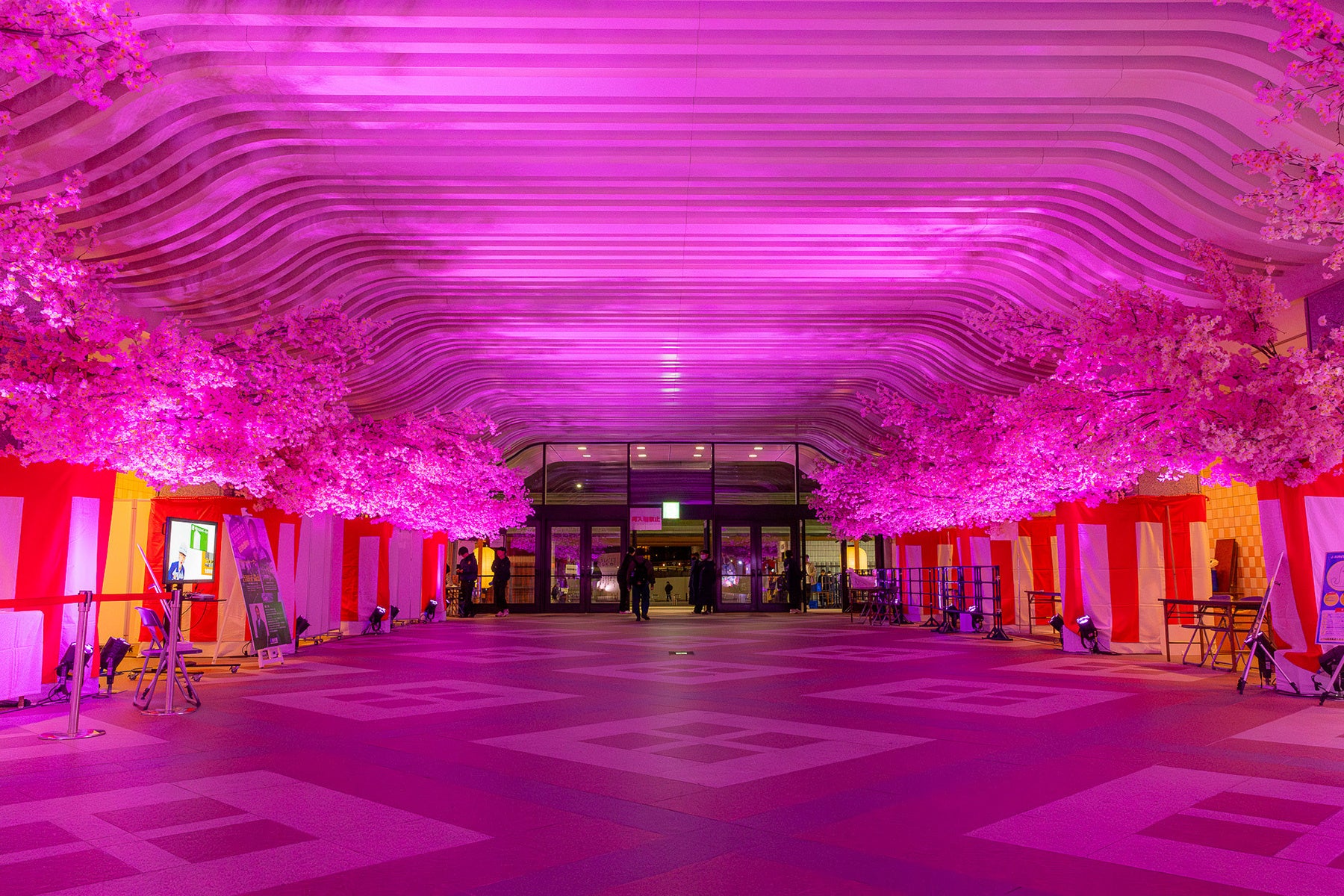 会場内は桜の装飾を施して、音楽を楽しみながらひと足早い“お花見”気分も味わえるのがギタージャンボリーの醍醐味です。さらに、両国ならではの「ちゃんこ」や「やきとり」を片手に、アーティストたちの極上の弾き語りを楽しむことができるなど、音楽と食の融合による特別な体験をお届けします。