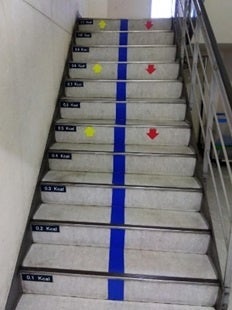 グループでの取り組みに加えて、階段へのカロリー表示や食堂などの環境整備など、社員の健康を維持するための取り組みを実施しています。