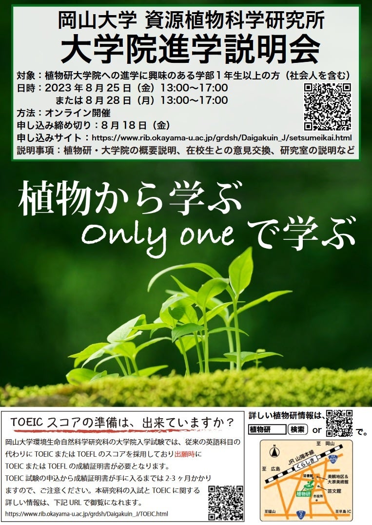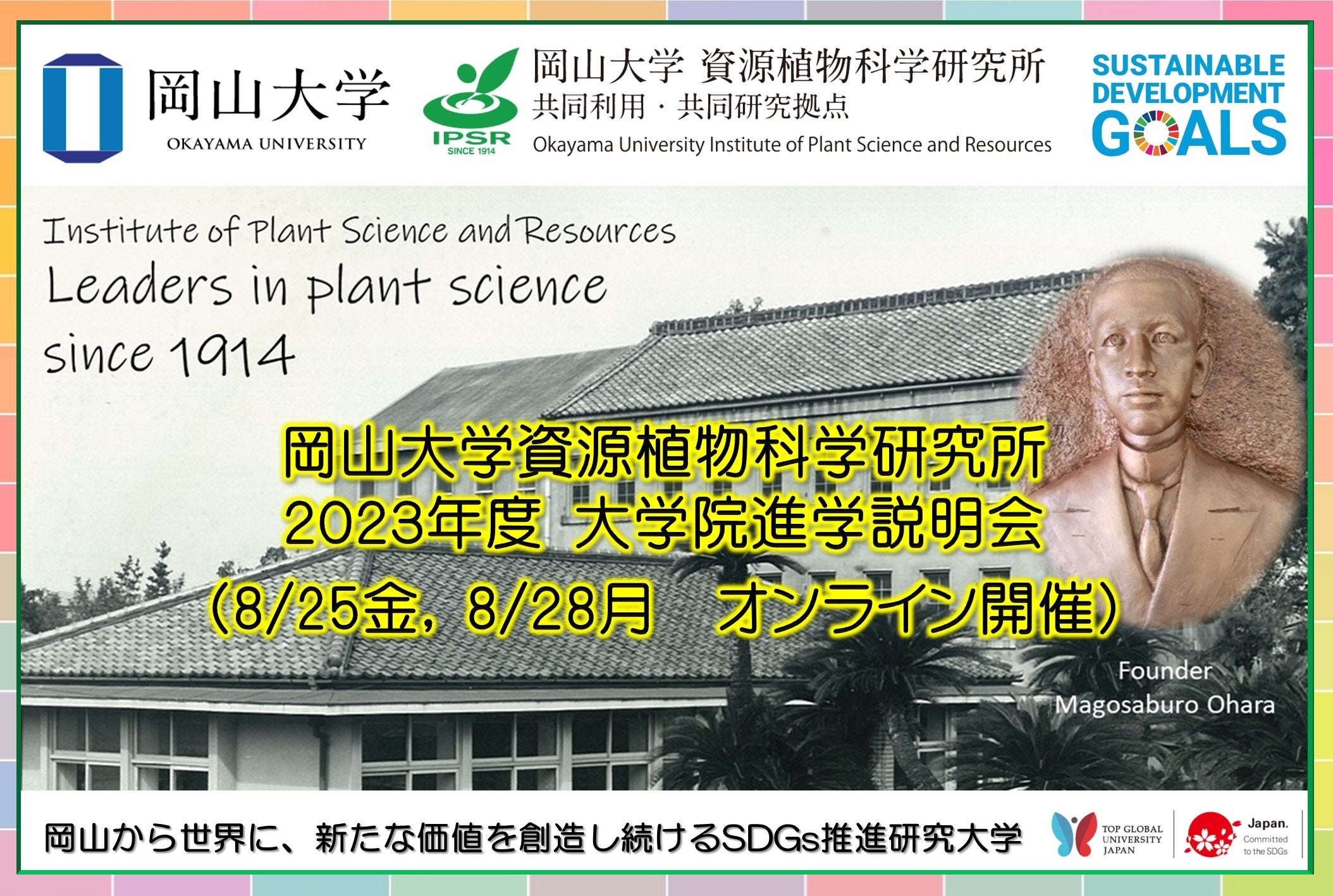 【岡山大学】資源植物科学研究所 2023年度 大学院進学説明会〔8/25,金、8/28,月 オンライン開催〕