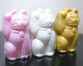 豪徳寺に因んだかわいい招き猫をそっくりそのままかたどった、こしあん、しろあん、つぶあんの3種類の味の最中。