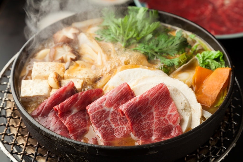 レアでも食べられるほど新鮮な馬肉を、野菜やりんごをすりおろしにんにくをたっぷりと効かせたオリジナルの割り下で食す精力すき焼きです。