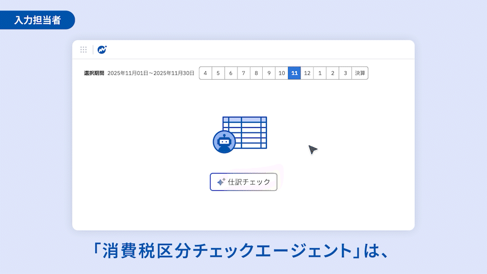 ※ サービス画面内およびサポートサイトでは、AI会計チェック「消費税区分エージェント」と表記される場合があります。