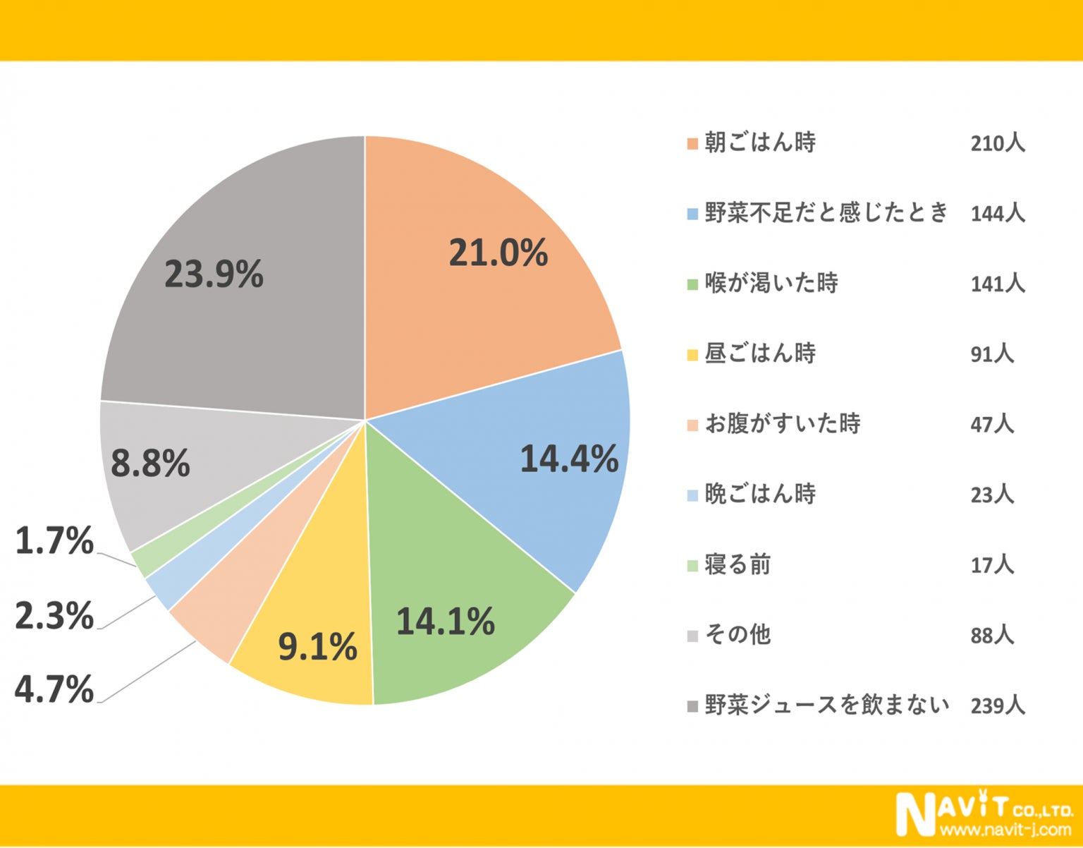 【調査】野菜ジュースを飲むタイミングで最も多いのはいつですか?(対象:1000人)