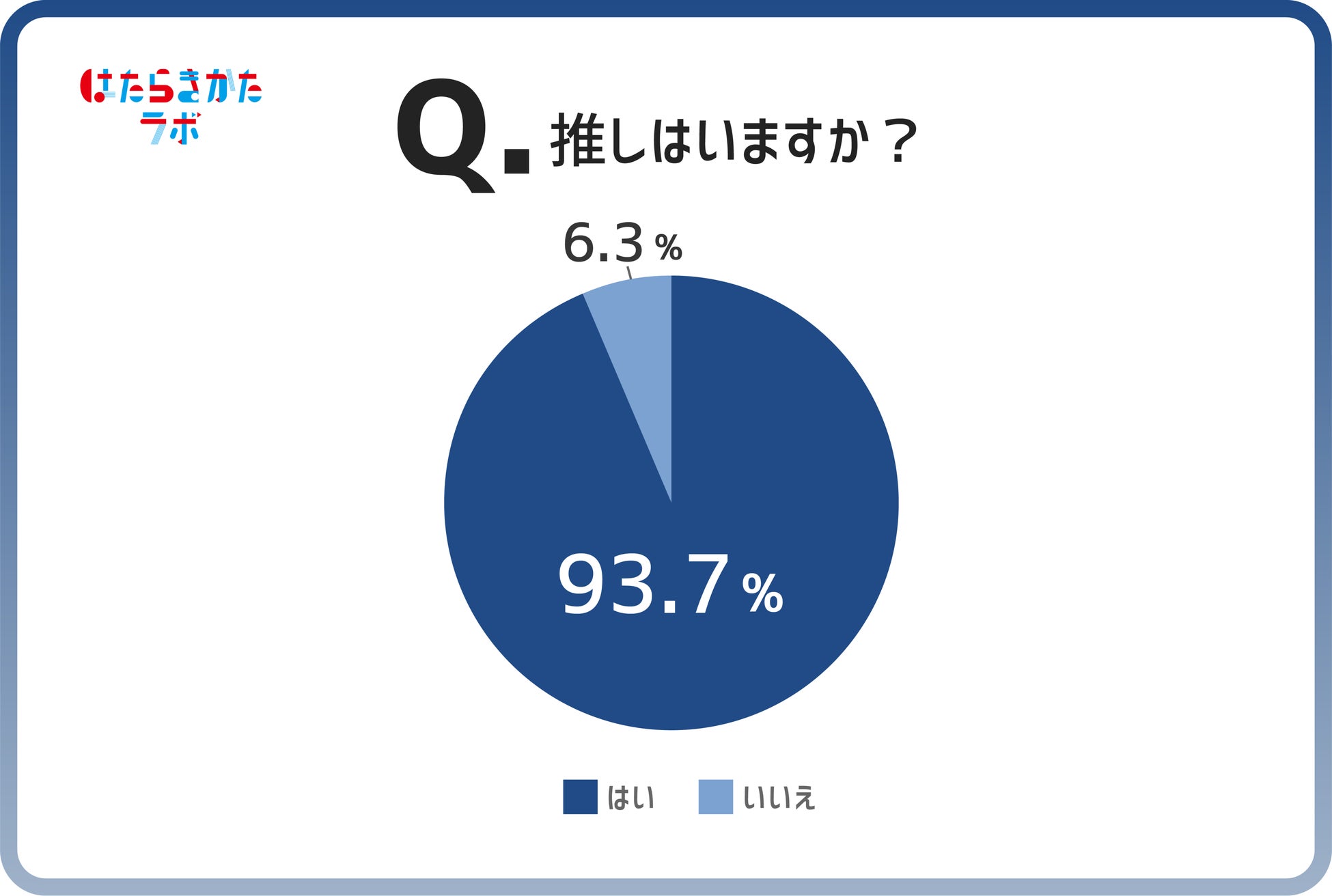 アンケートで、「推し」はいますか?と尋ねたところ「はい」と回答したZ世代が93.7%と、ほとんどのZ世代に推しがいることがわかりました。