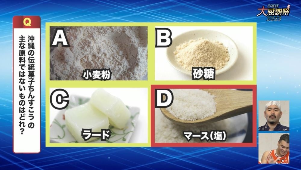 客室からスマホで生中継に参加できるクイズイベントです。実際に食べたり香りを比べたりする体験型の問題から、沖縄の“あるある”な問題も出題されるライブ感のあるクイズ番組です。よしもと芸人エンタテインメント沖縄所属の芸人が沖縄に関わるクイズをおもしろおかしく出題します。