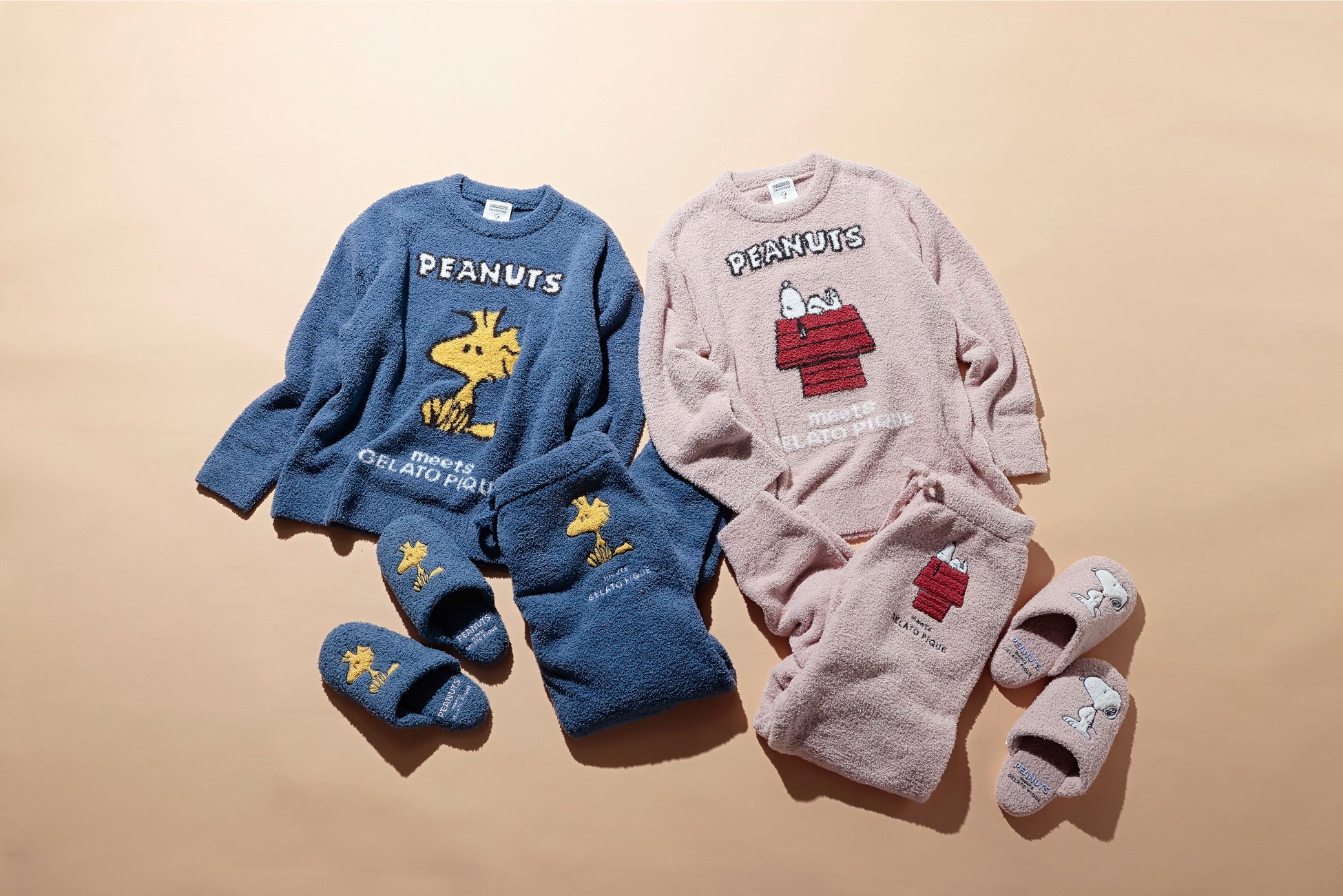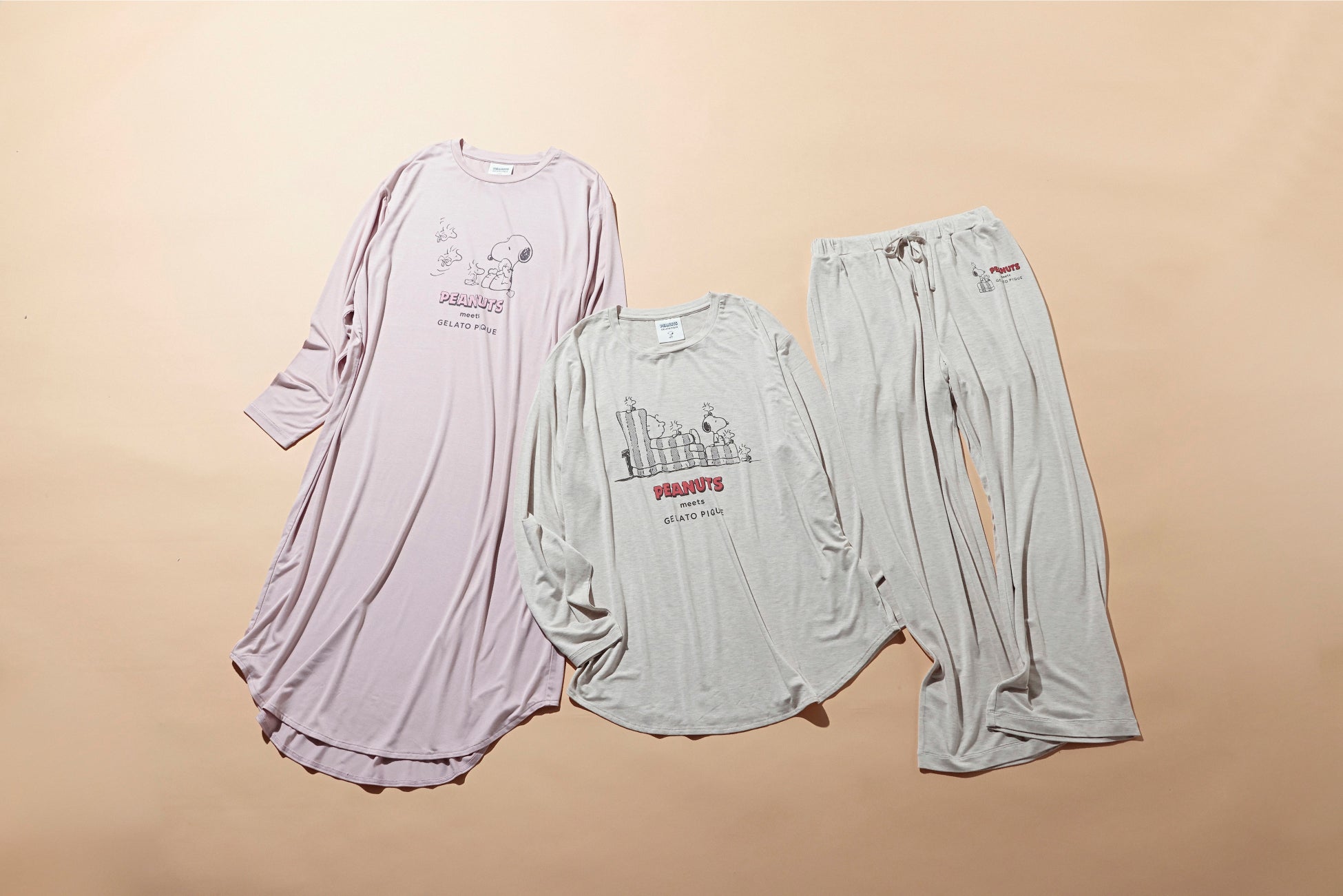 スヌーピーとウッドストックがデザインされたルームウェア。ギフトにもおすすめのラインアップ。