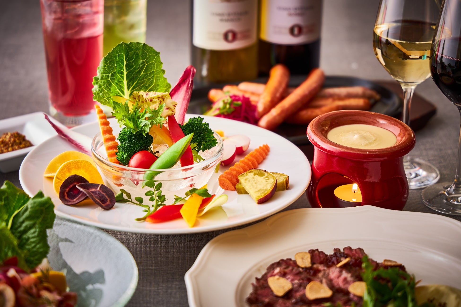 本格的な冬の到来を感じる季節に、ビタミン豊富な旬の柑橘類を使用した爽やかな味のカクテルをご用意いたします。ウォッカベースに金柑のほろ苦さを合わせた「金柑モスコミュール」、赤ワインと柚子の2層が綺麗な「ゆずアメリカンレモネード」、冬の定番フルーツであるみかんをシャンパンと組み合わせた「マンダリンミモザ」の3種類のカクテルをお楽しみいただけます。地上100mからの夜景をバックに、シェフ珠玉のアラカルトメニューとともに極上の一杯をご堪能ください。