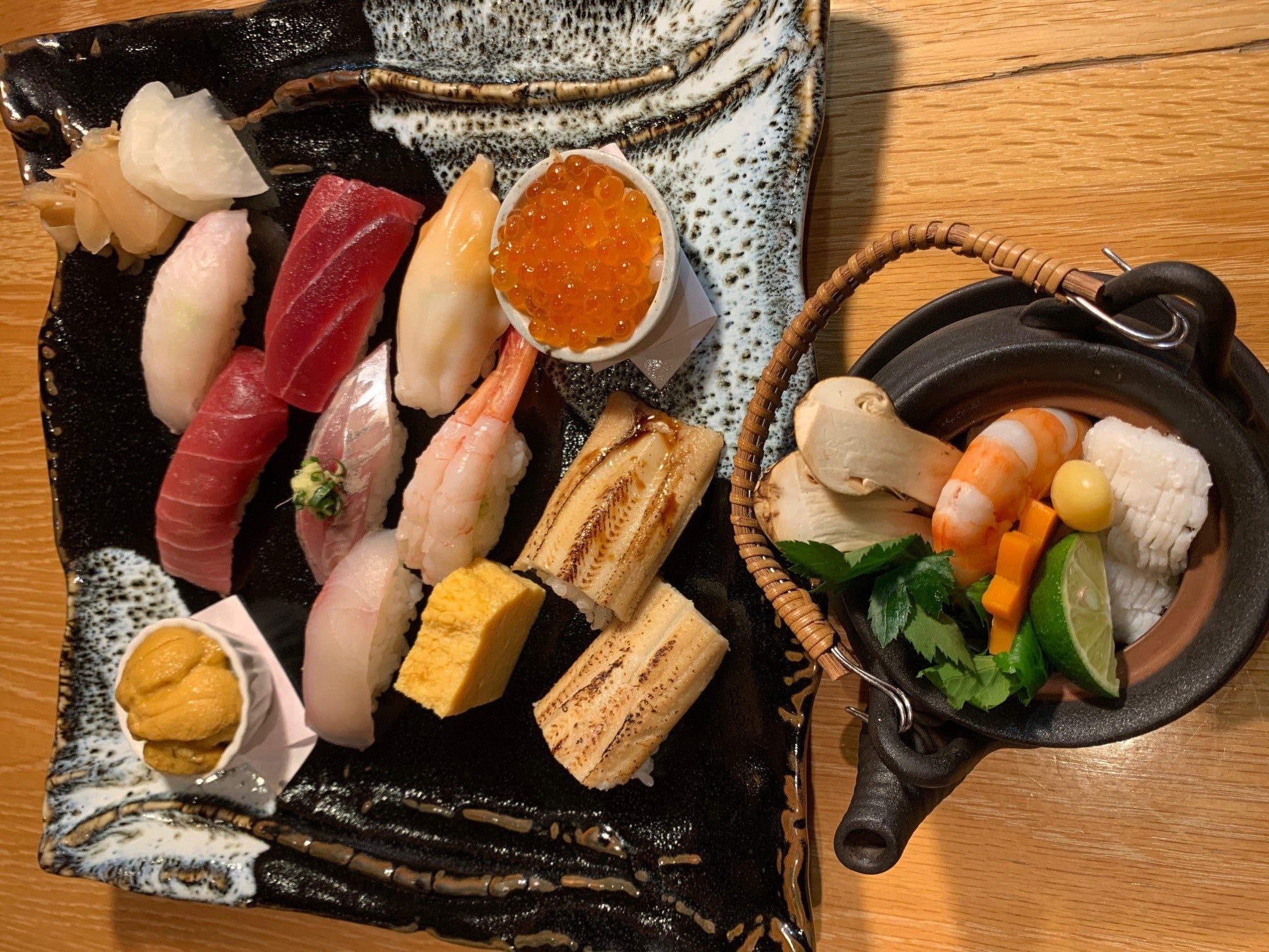 (先付、にぎり鮨10貫、松茸土瓶蒸し)