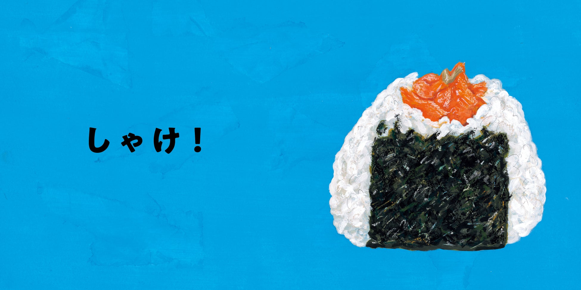 とってもおいしそうな三角おにぎり。「ぱく!」とかじってページをめくると、中の具はしゃけでした。次のおにぎりの中身はなにかな? 最後の巨大おにぎりには見たこともない、びっくりな具が待っています。絵本でお気に入りのおにぎりを見つけたら、実際におにぎりをにぎってみてください!