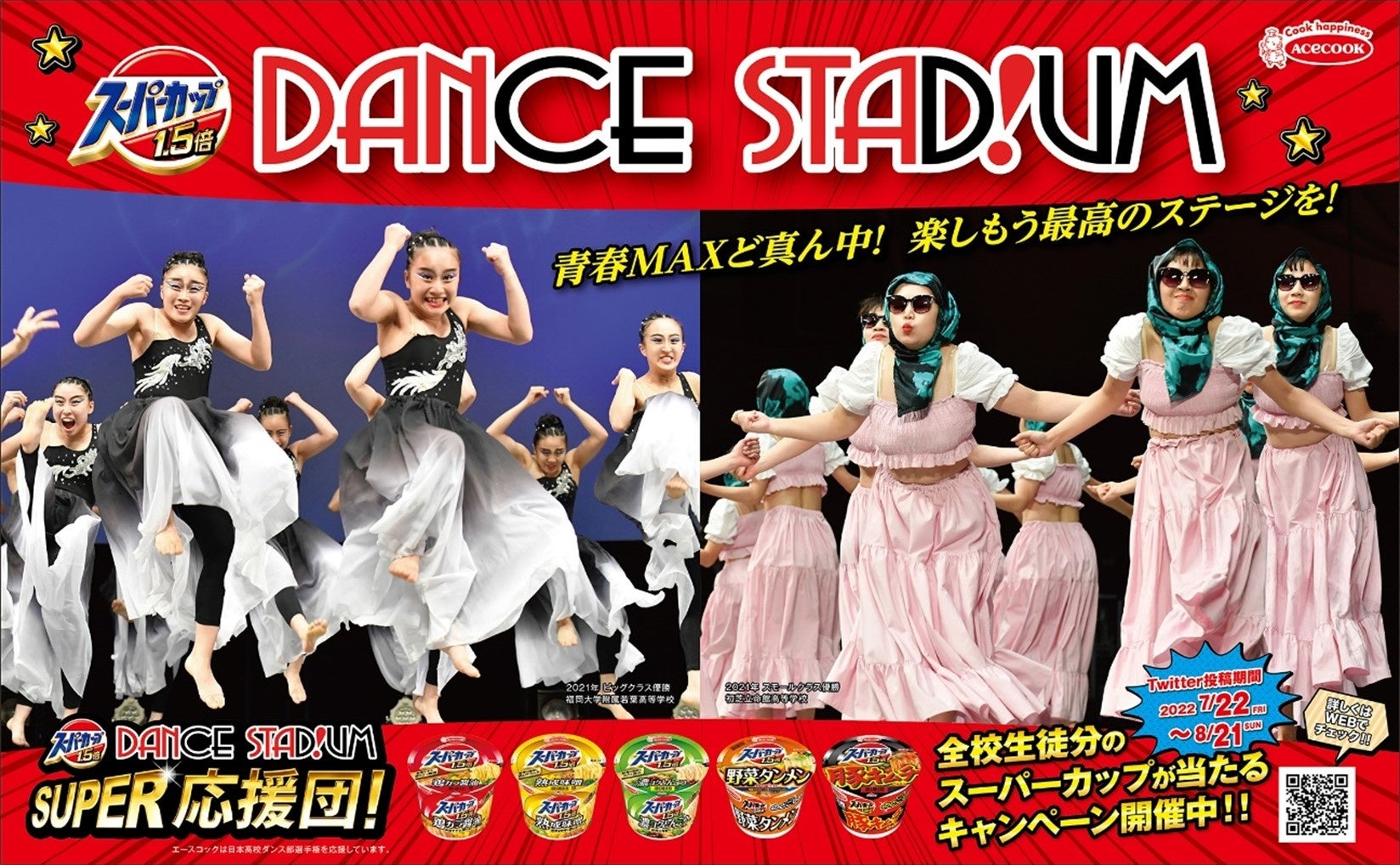 エースコック株式会社では、『スーパーカップダンススタジアム』を盛り上げるスペシャルサイト『SUPER応援団!』を開設予定です。スペシャルサイトでは出場選手や出場校を応援する企画を2022年7月22日(金)より開始予定です。