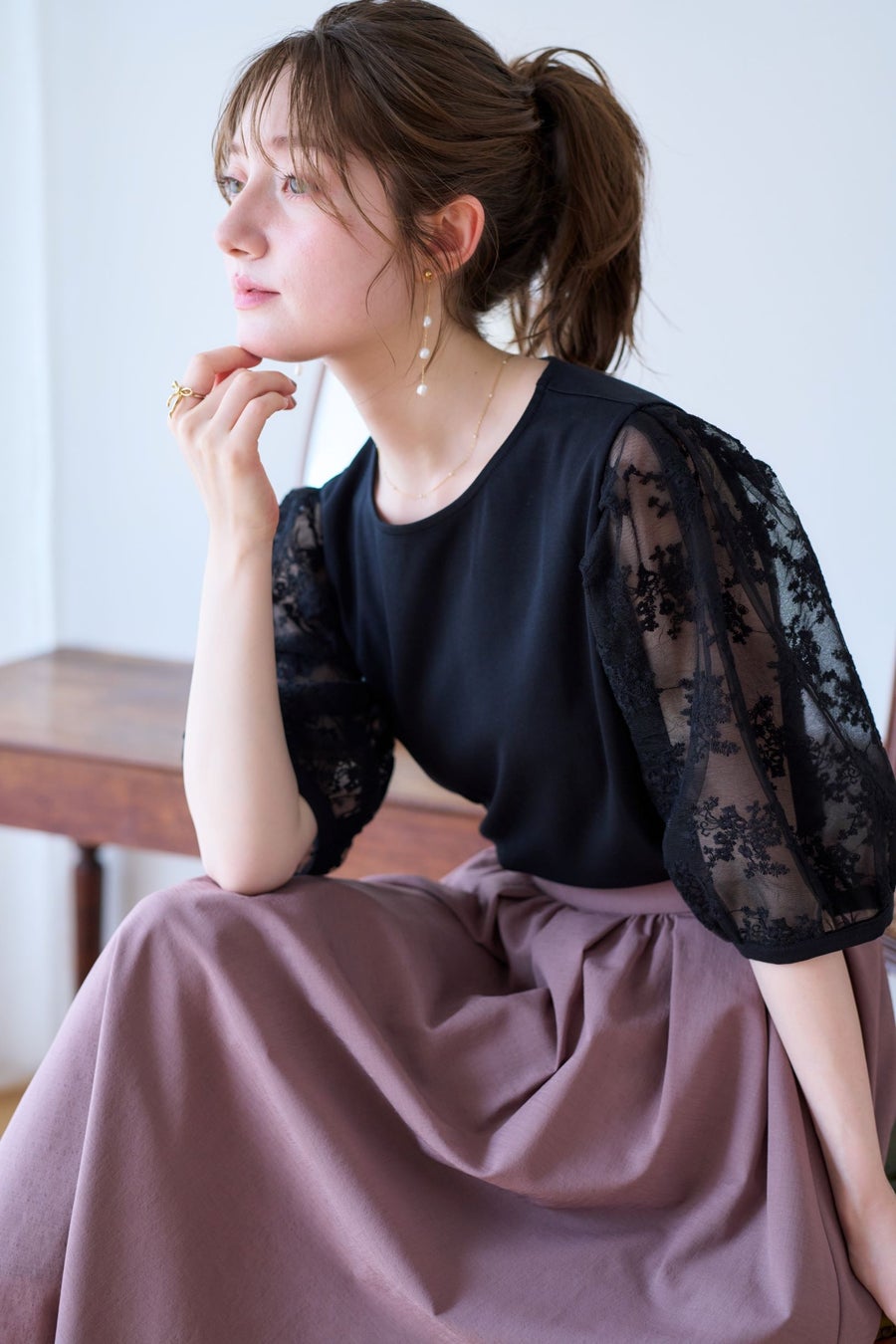 ■袖レースデザイントップス