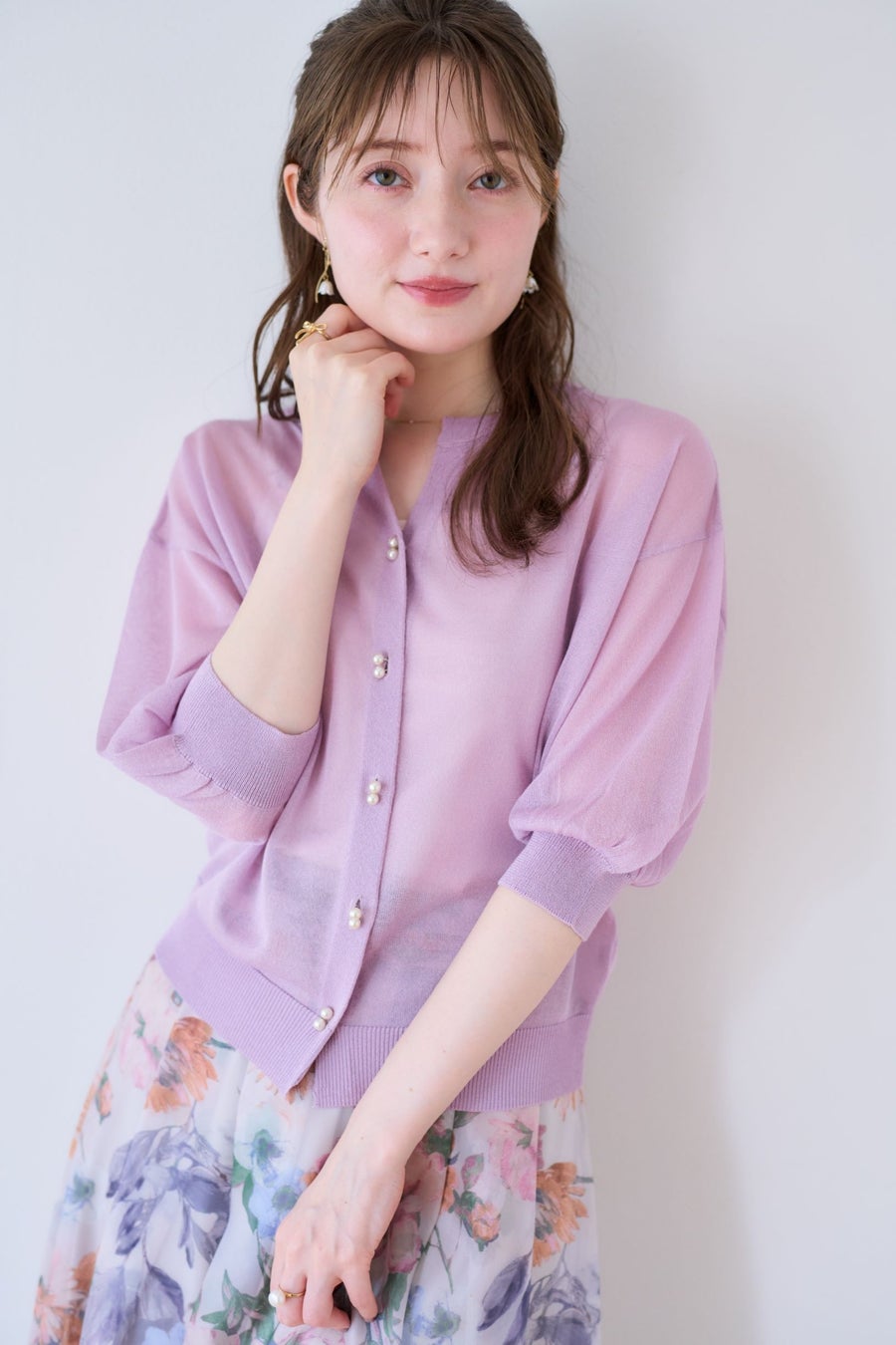 ■ダブルパール5分袖カーディガン