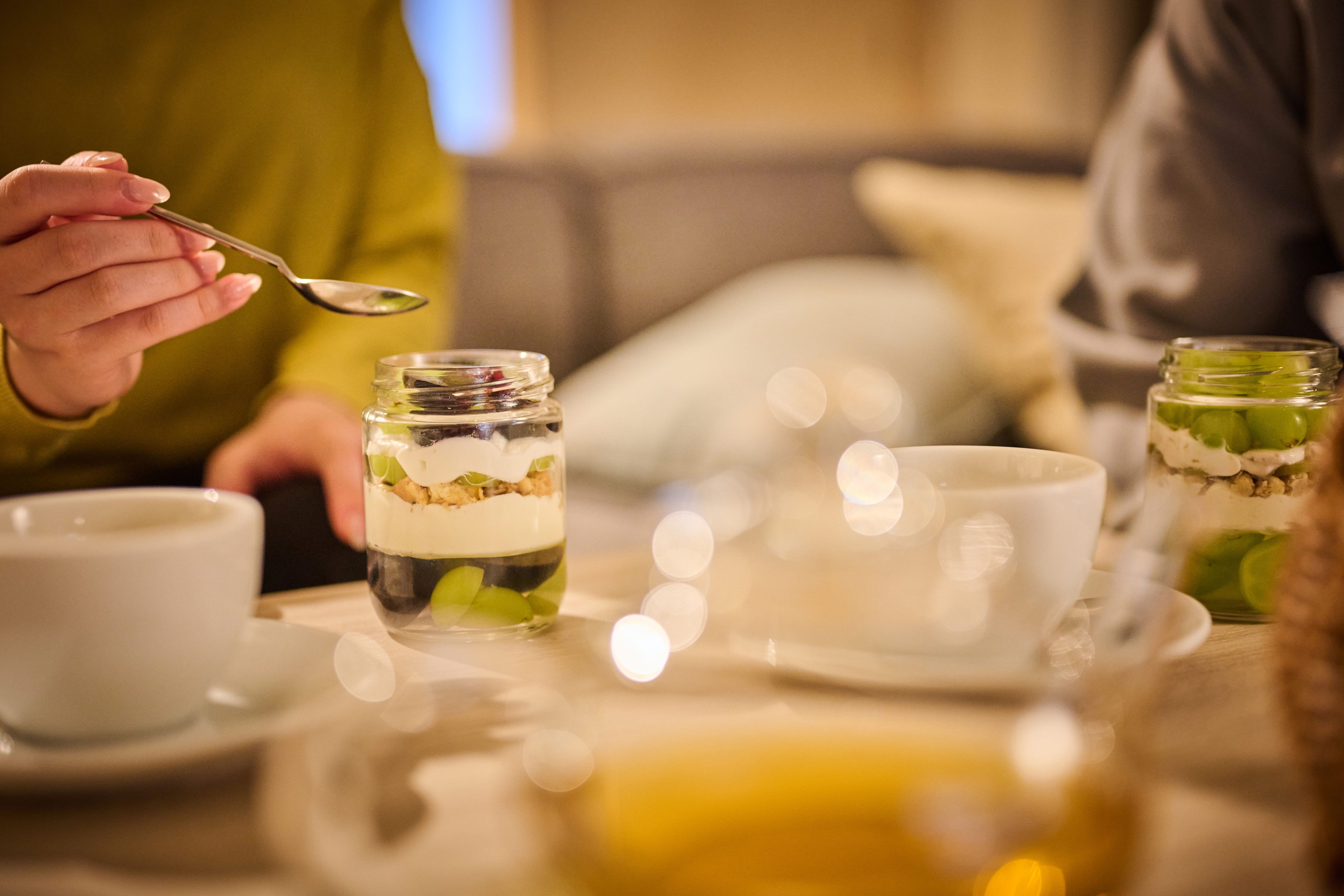 旬のぶどうを贅沢に使用したホテル特製のパフェを、かわいらしい瓶に美しく仕上げました。一緒にご用意するのは、「御用邸」や「那須の香り」、「とちおとめセイロン」など、豊かな香りを楽しめる那須産の紅茶。味わいと香りに包まれる優雅なひとときをお過ごしください。