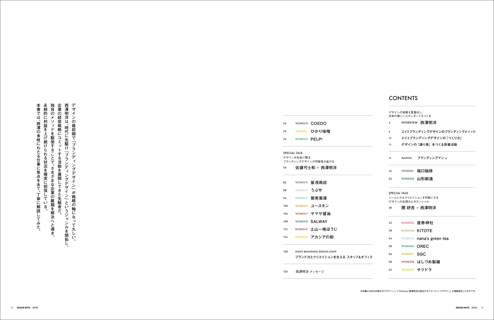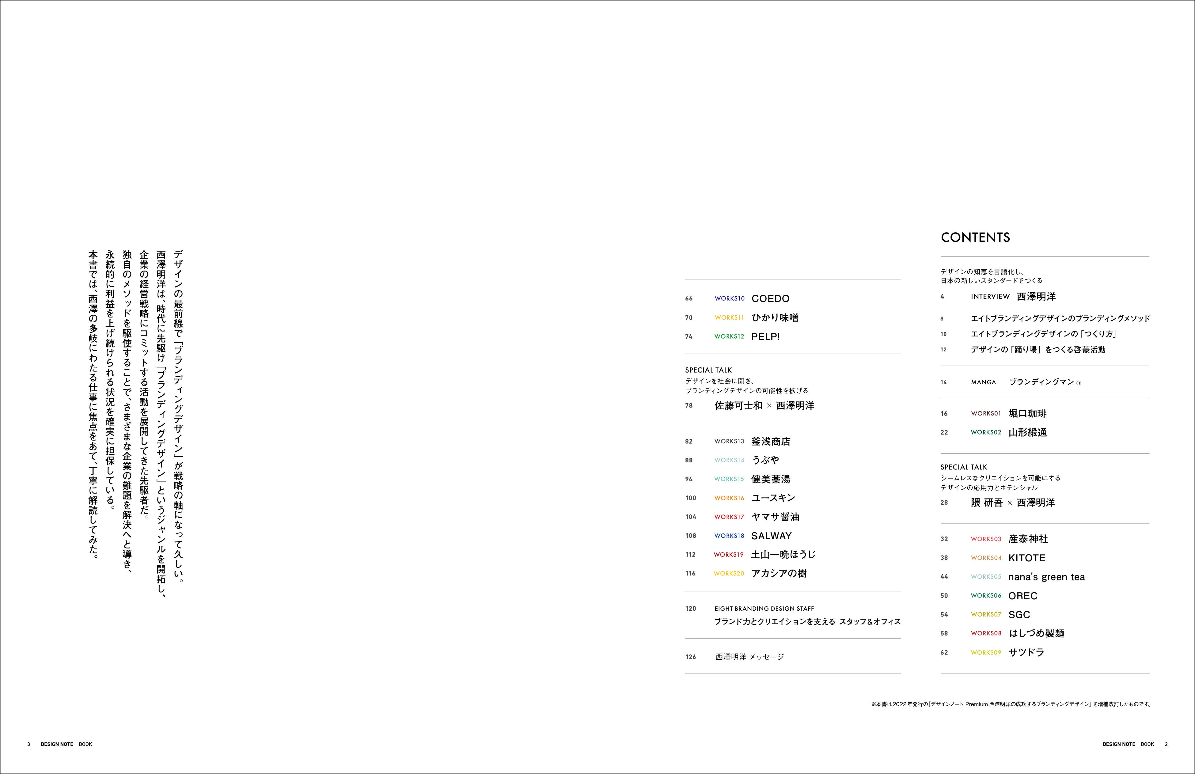 本書は、2022年7月刊行『デザインノートPremium 西澤明洋の成功するブランディングデザイン』が大好評につき、最新の仕事の事例を約40ページ増補し書籍化が実現。