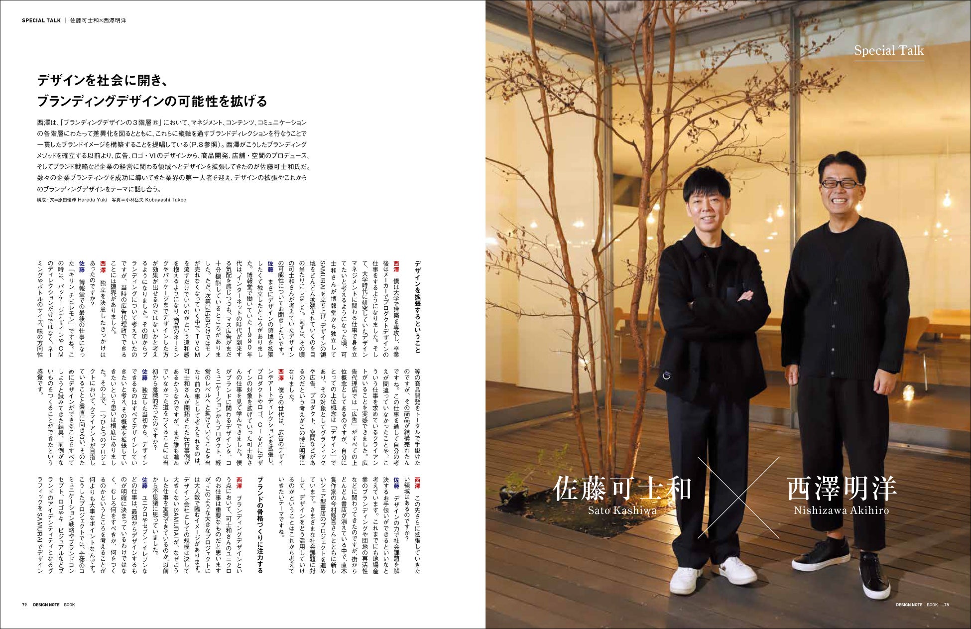 さらに、建築家・隈研吾、クリエイティブディレクター・佐藤可士和との特別対談も加え、ブランディングデザインの本質に迫る1冊となります。