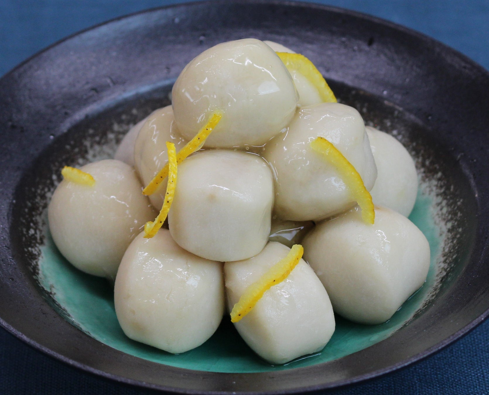 月に見立てた丸い小芋です。なめらかな食感で、やさしい甘さが特徴です。