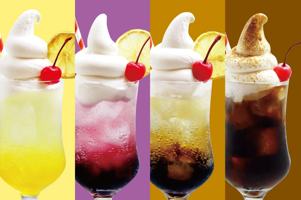 色とりどり、味わいいろいろのソーダに、たっぷりソフトクリームをON。